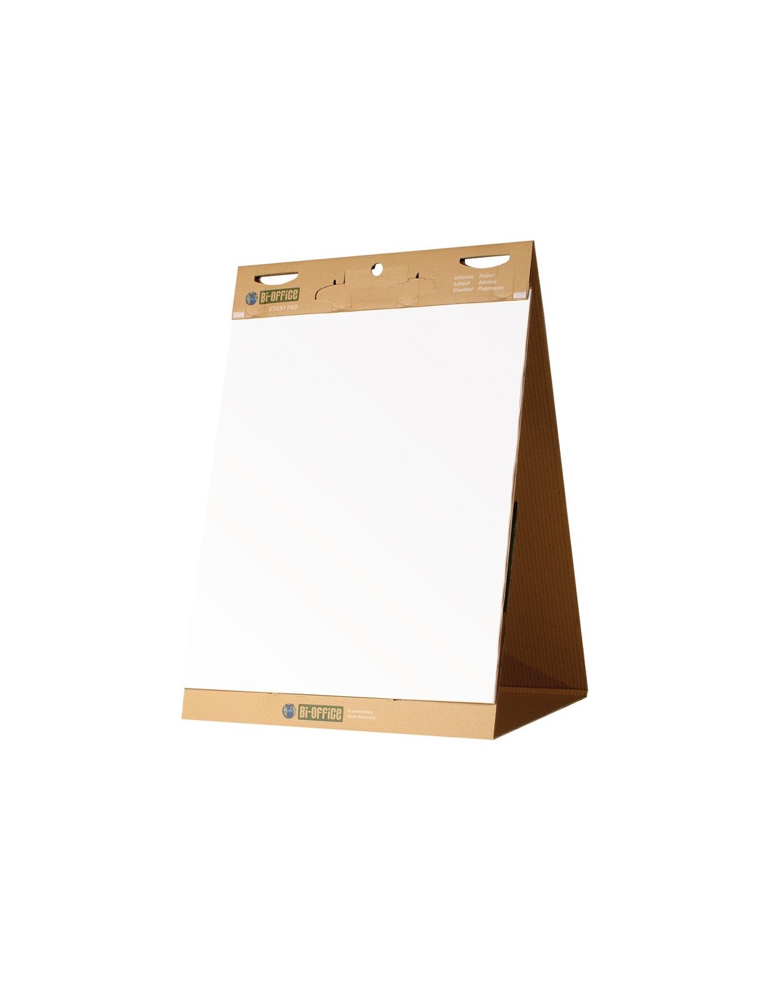 Bloc de sobremesa para pequeñas reuniones y presentaciones. Papel liso blanco reciclado de 80 g/m². Fácil de arrancar y pegar en otras superficies. Base resistente con tirador integrado y bandeja para rotuladores. Medidas: 50 x 58,5 cm. 20 hojas/bloc.