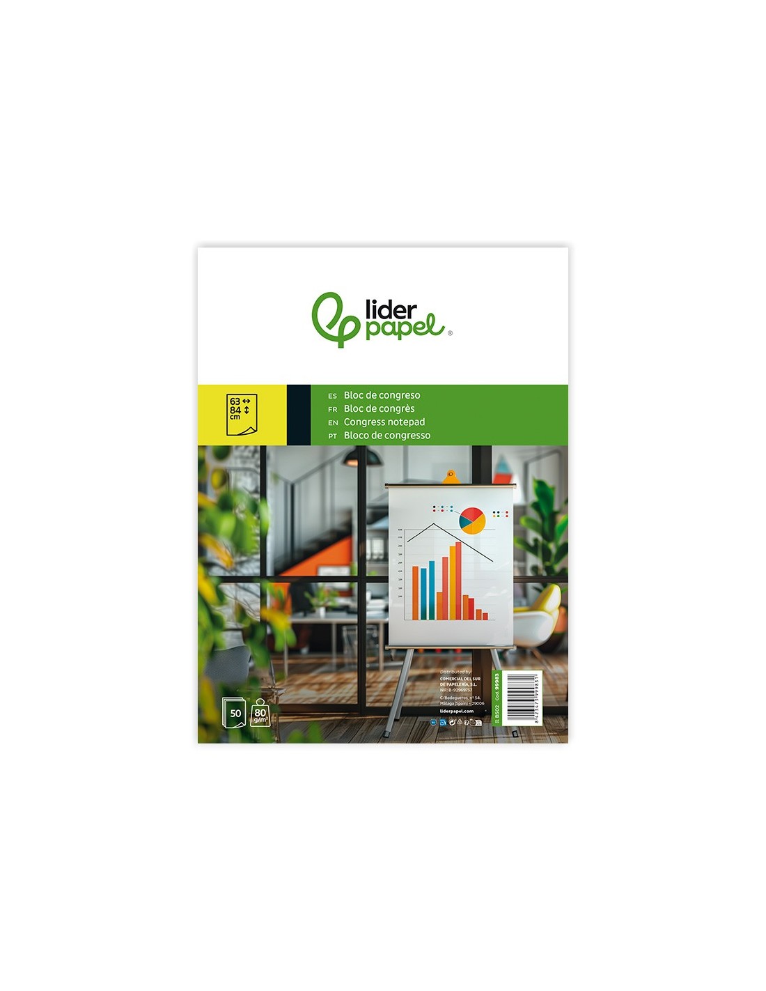 Para pizarra. Ideal para convenciones, reuniones, colegios, etc. En dos presentaciones diferentes de 25 + 5 gratis y 50 hojas, para adaptarse a cualquier necesidad. Papel de 80 g/m². Medidas: 63 x 84 cm.
