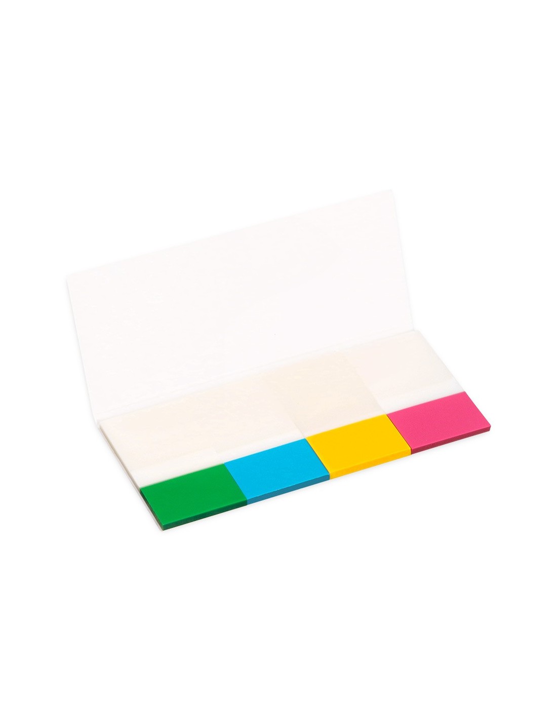 40 hojas x 4 colores transparentes. Para encontrar fácilmente las páginas de interés. Material plástico. Medidas: 45 x 25 mm. El pack de 160 banderitas.