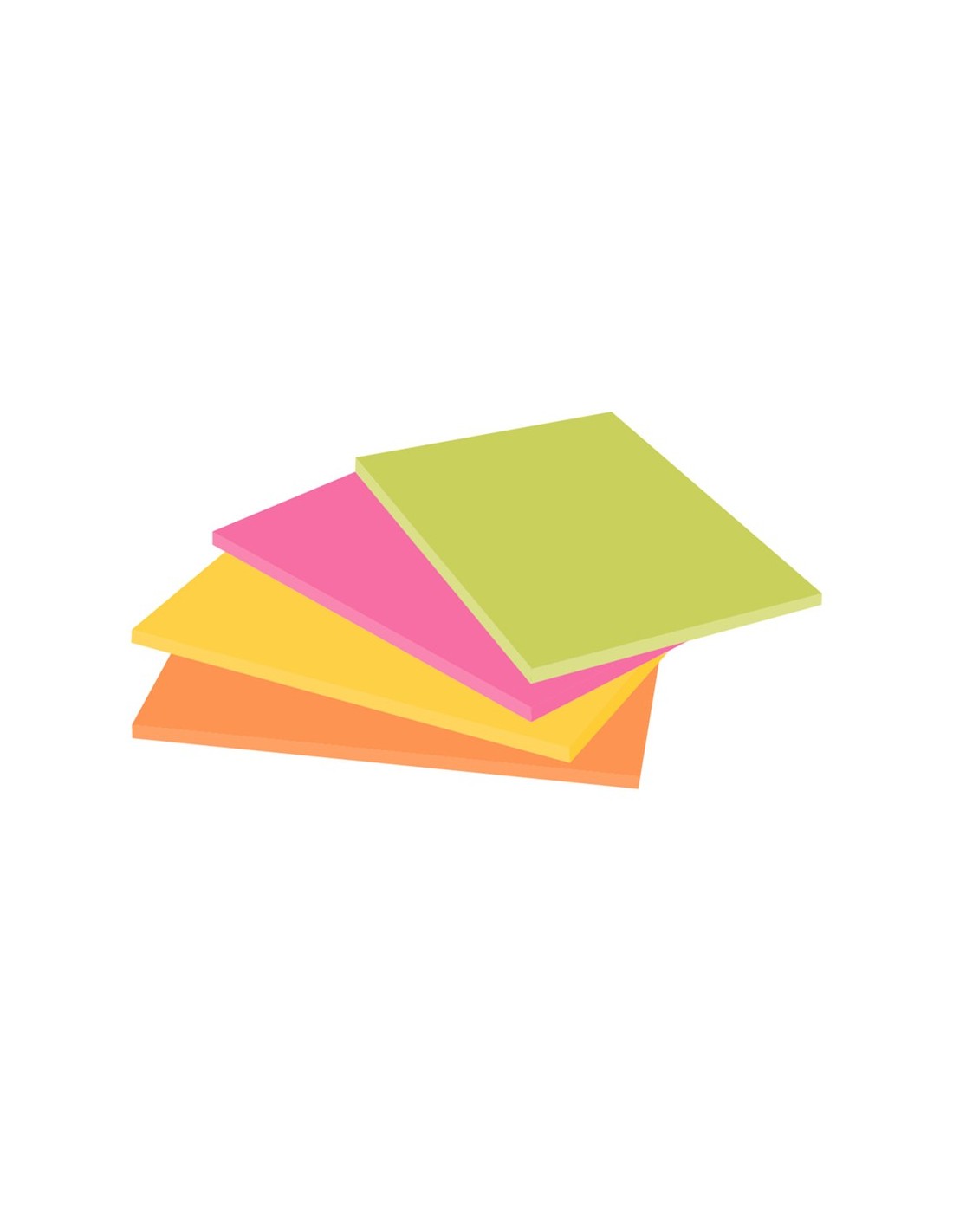 La nota que más pega, durante más tiempo y sobre más superficies. Perfecta para zonas verticales o de difícil adherencia. Formato extragrande para escribir en todo el espacio que se necesite. Colores surtidos: amarillo, naranja, fucsia y verde neón. Medidas: 149 x 98 mm. 45 hojas. El pack de 4 blocs.