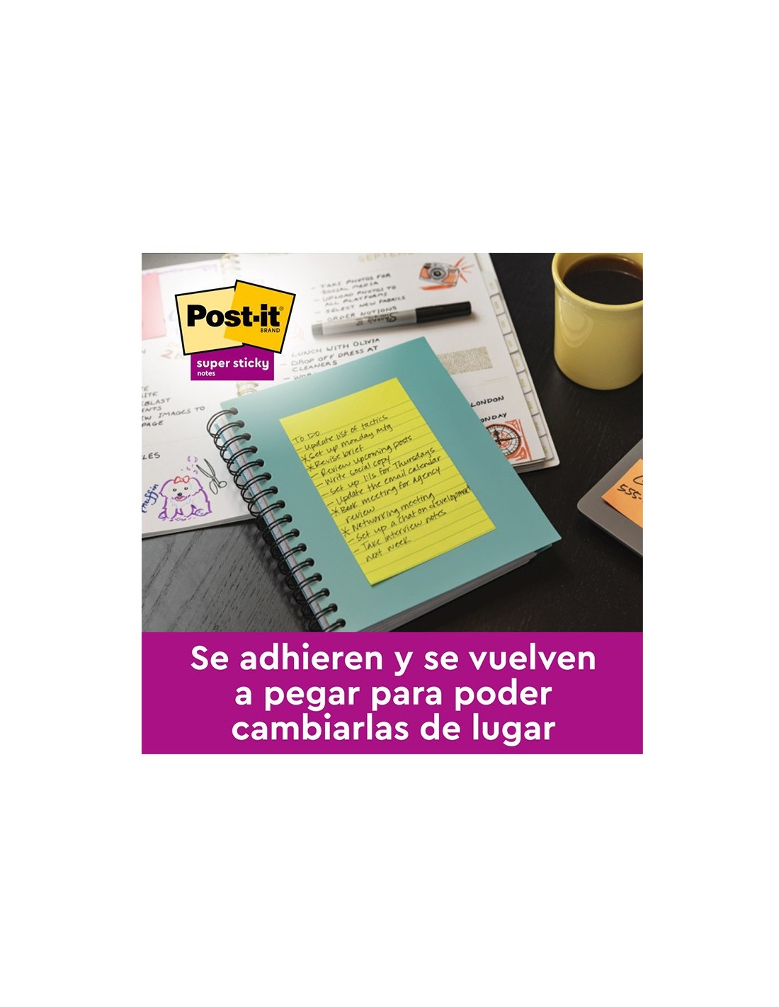 BLOC NOTAS ADH.POST-IT SUPER STICKY 149X98MM 4UD 45H. COL. SURT.