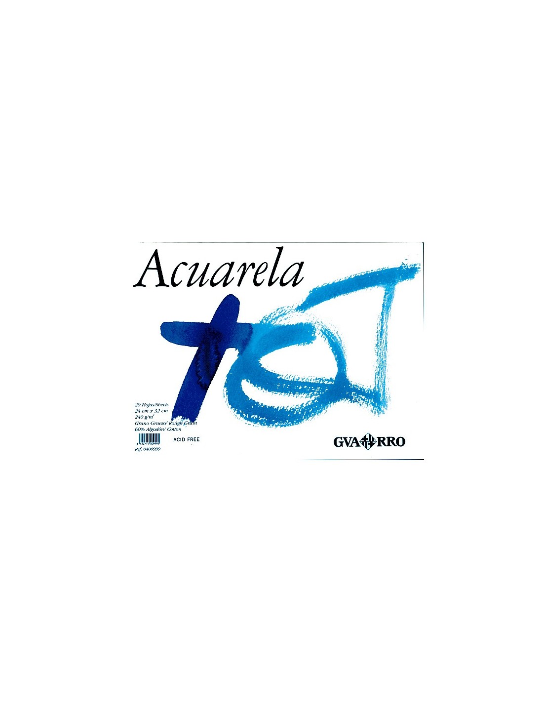 20 hojas. 240 g/m². Papel acuarela de color blanco natural con barbas a dos lados y marca al agua. Fabricado en forma redonda, posee una excelente calidad y resistencia. Permite la máxima absorción del agua. Sin recuadro.