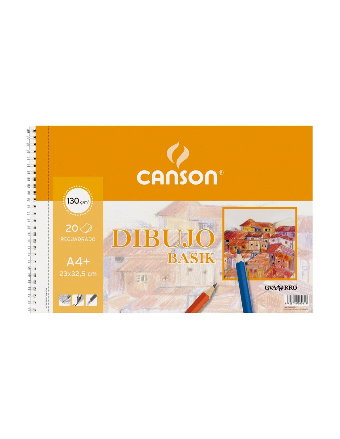 Formato Din A4+. 20 hojas. 130 g/m². Papel blanco natural, que ofrece dureza y regularidad en su superficie. Ligeramente satinado. Idóneo para dibujo a lápiz, tinta y ceras. Microperforado. Con recuadro.