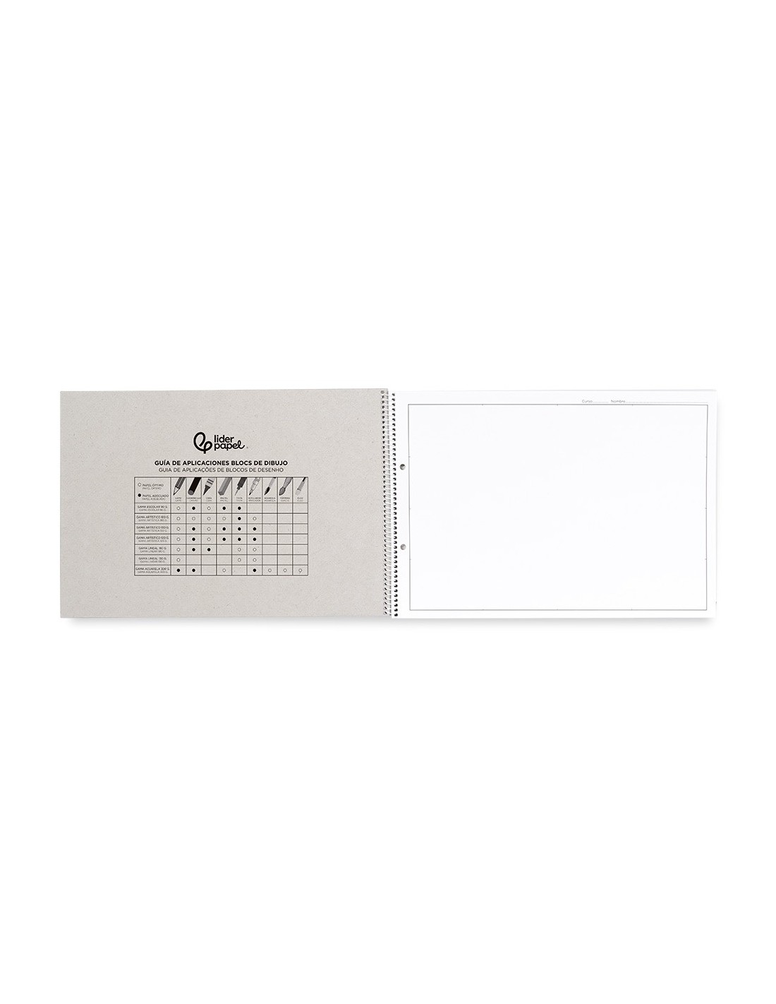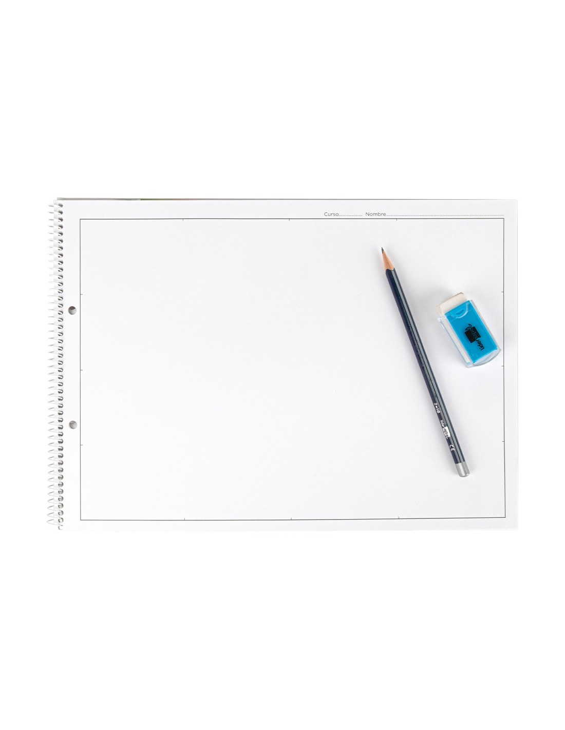 Tamaño folio . 20 hojas. 130 g/m². Papel blanco. Microperforado. Su cuerpo y textura lo hacen adecuado para lápiz, grafito, ceras y colores. Con recuadro.