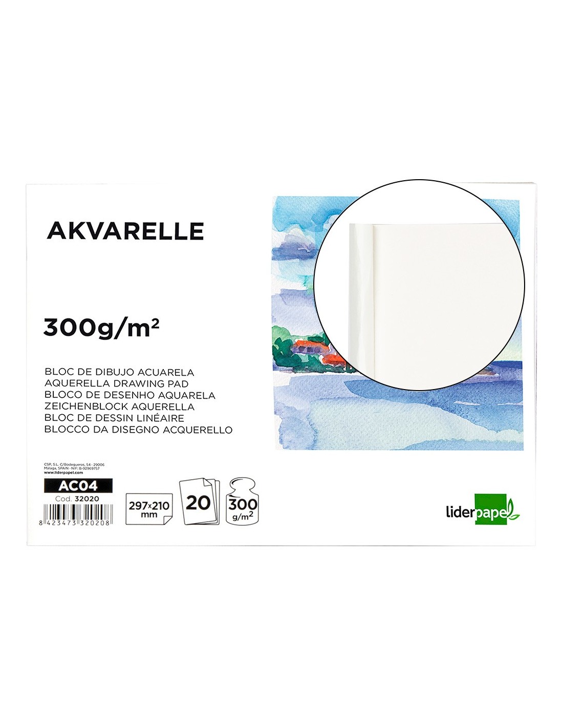 BLOC ENCOLADO LIDERPAPEL DIBUJO A4 ACUARELA 20H. 300GR.