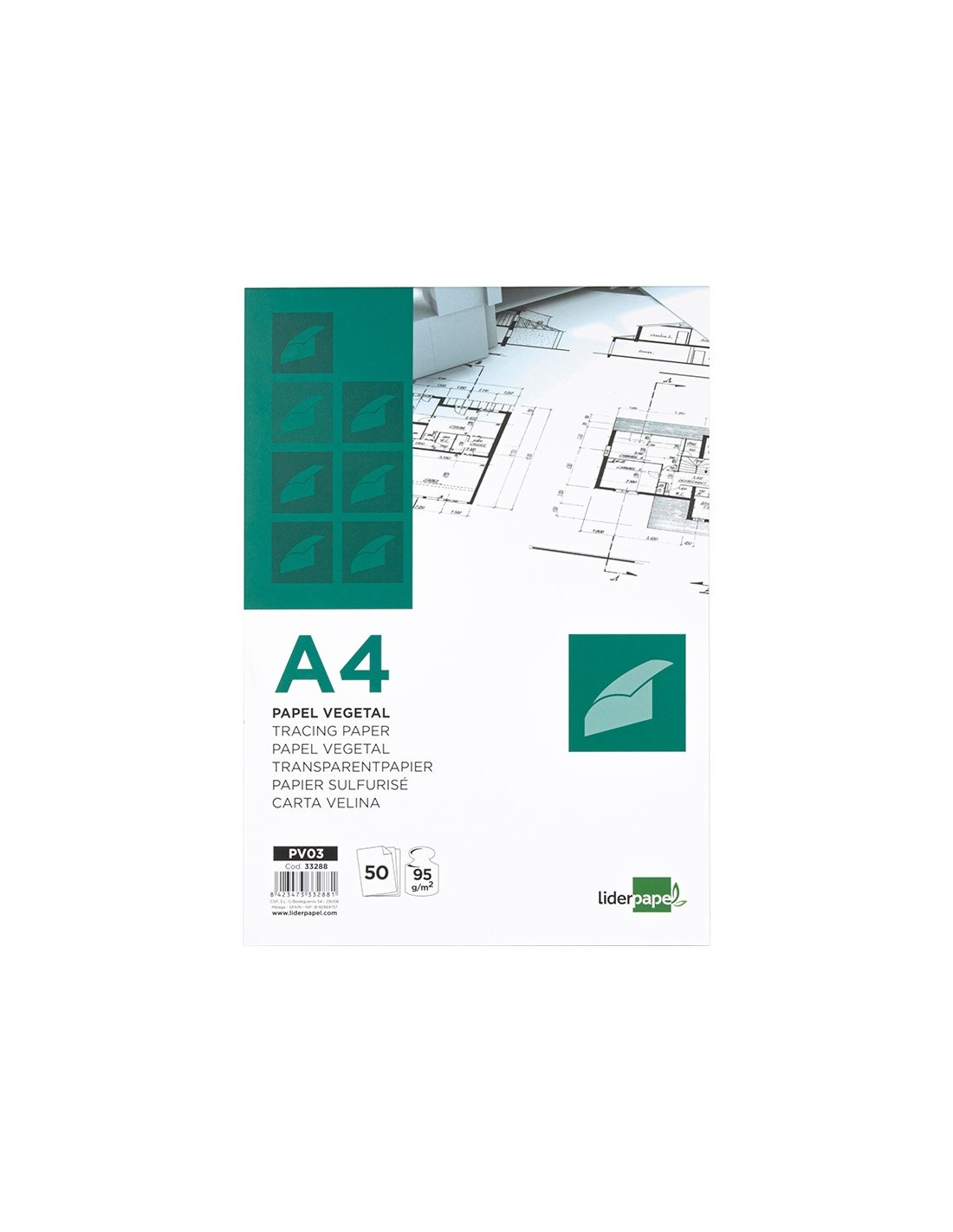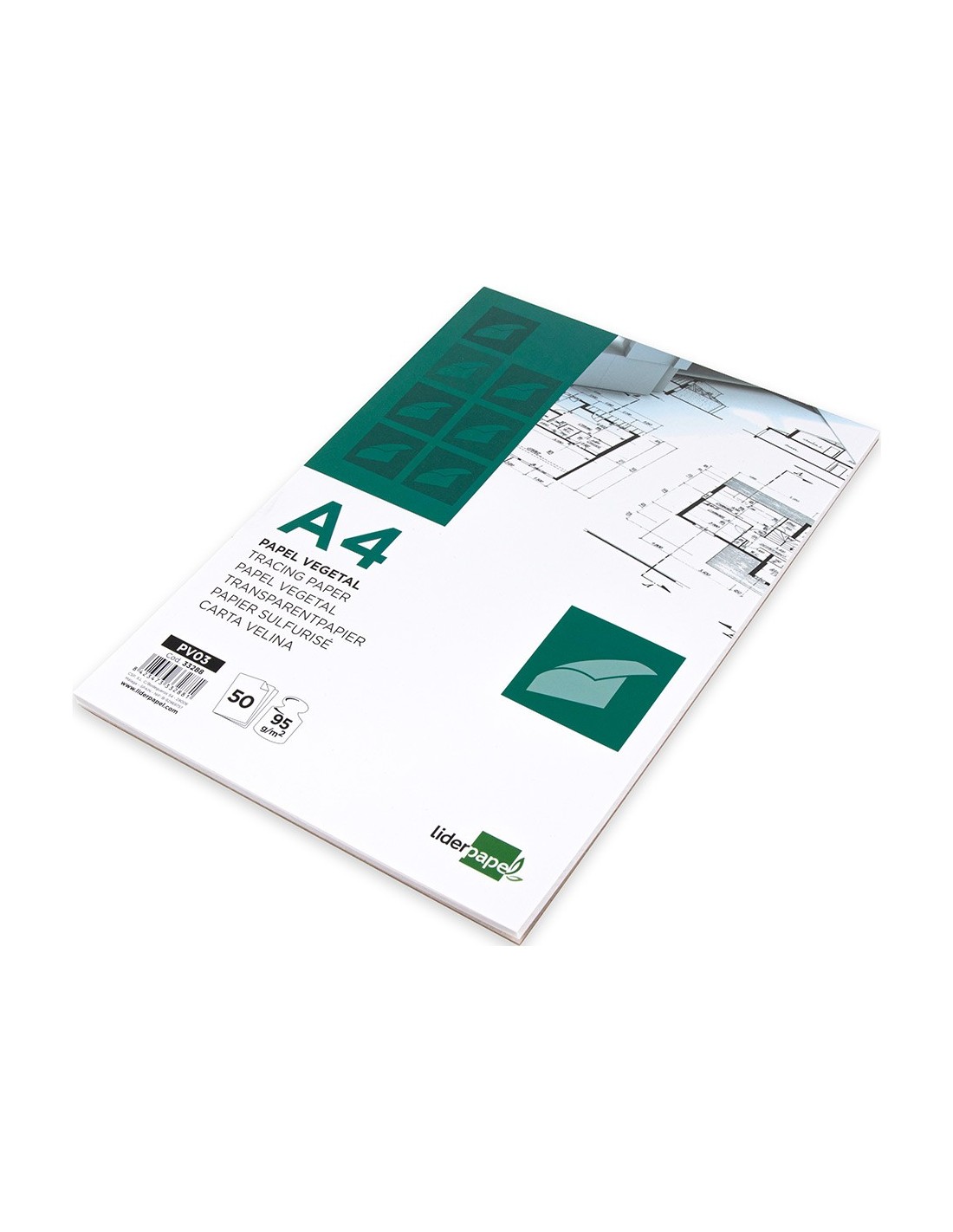 Elevada transparencia. 50 hojas. 95 g/m². Papel ideal para calcar dibujo a lápiz o tinta. Din A4.