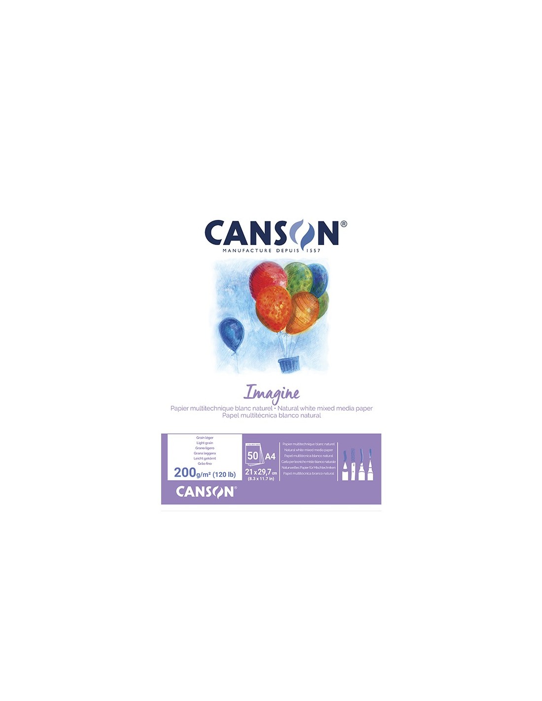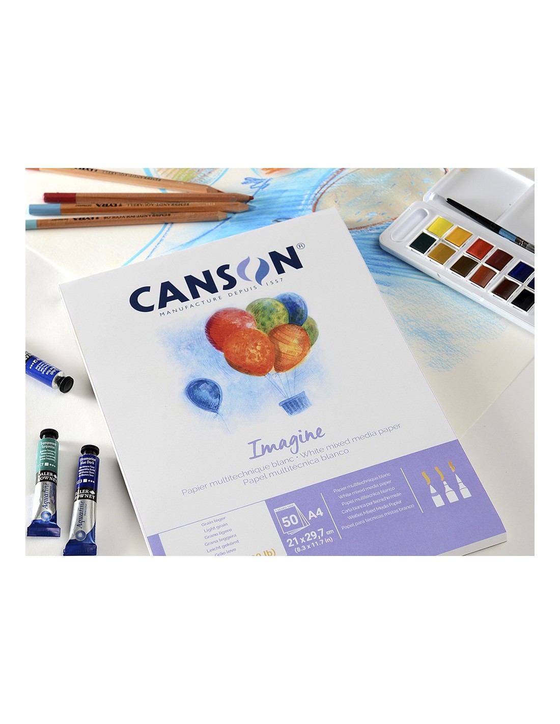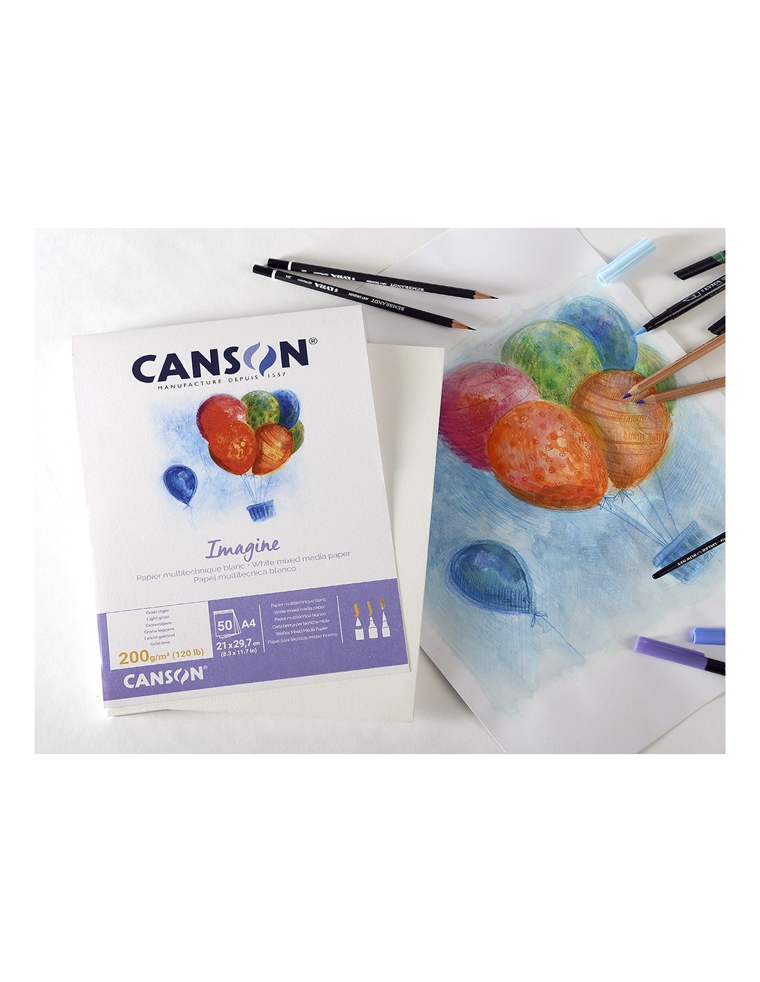 50 hojas. 200 g/m². Papel liso en color blanco puro que ofrece un excelente contraste y proporciona colores armoniosos. Destaca por su textura sedosa. Mantiene su aspecto natural, dándole una sensación de tacto excepcional. Soporte ideal tanto para las técnicas secas como húmedas: lápiz, pastel, carboncillo, acuarela, gouache, tinta y pluma. Sin recuadro.
