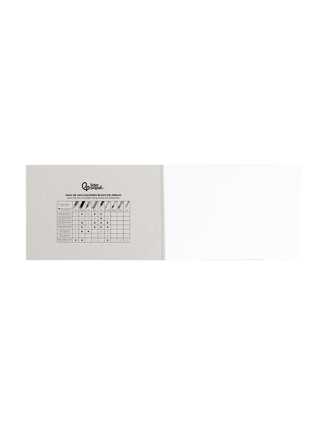 24 + 6 hojas. 120 g/m². Papel blanco de ligero tono crema. Su cuerpo y textura lo hacen adecuado para lápiz, grafito, ceras y colores. Sin recuadro.