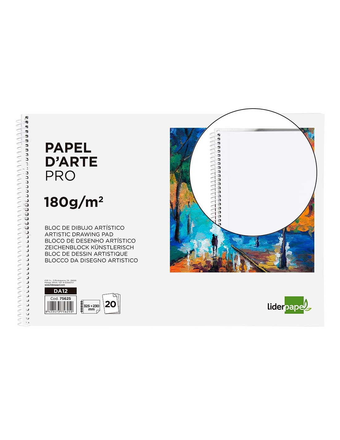 20 hojas. 180 g/m². Papel blanco. Su cuerpo y textura lo hacen adecuado para lápiz, grafito, ceras y colores. Microperforado. Sin recuadro.