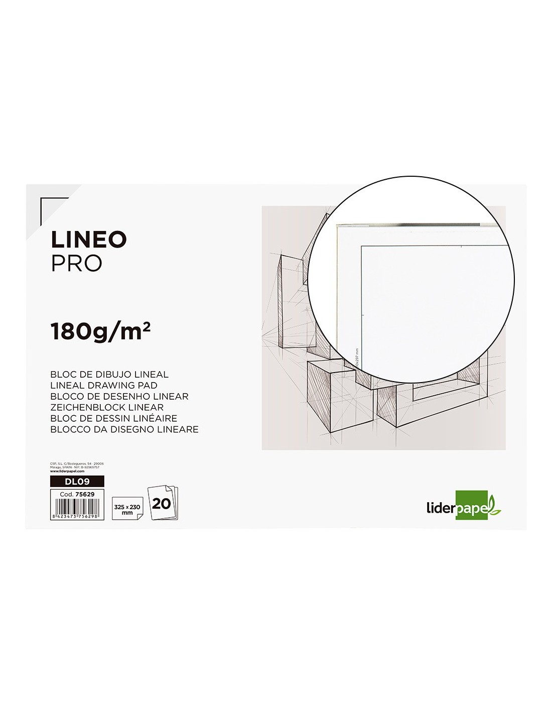 BLOC ENCOLADO LIDERPAPEL DIBUJO 230X325MM 20H.180GR. C/RECUADRO