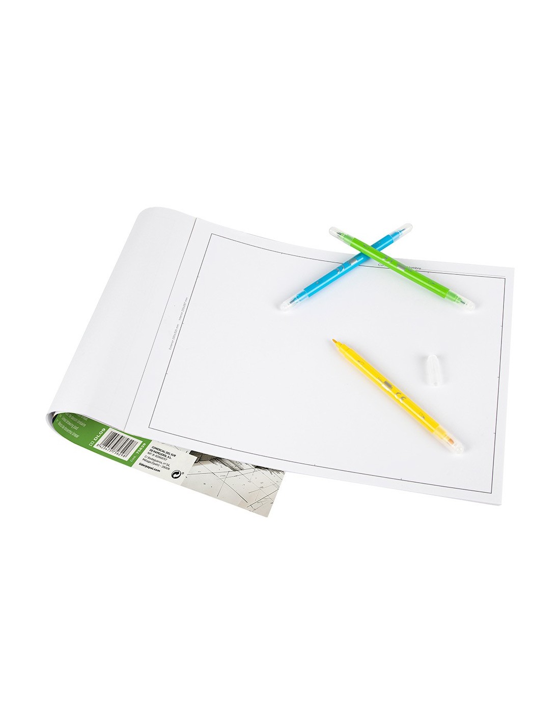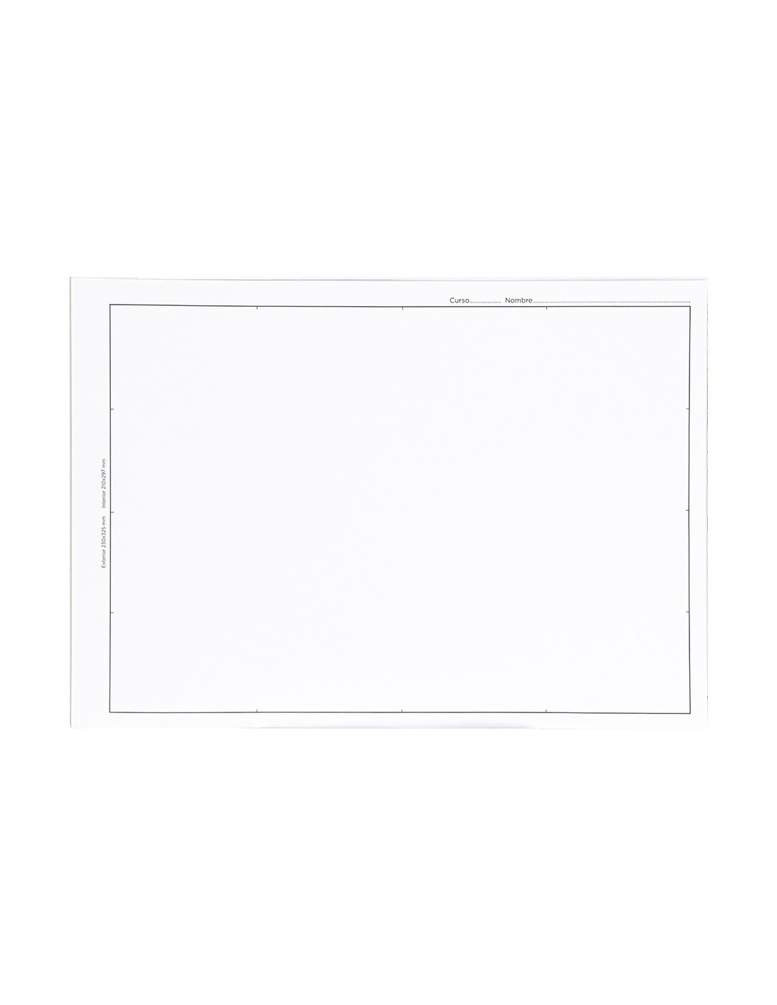 Tamaño folio . 20 hojas. 180 g/m². Papel blanco. Su cuerpo y textura lo hacen adecuado para lápiz, grafito, ceras y colores. Con recuadro.