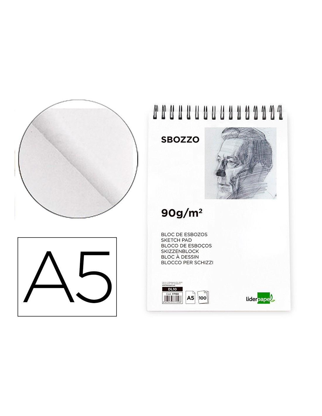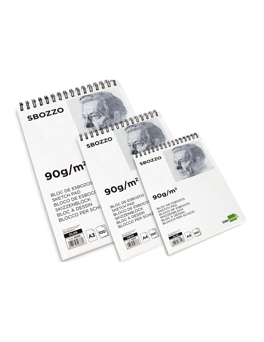 100 hojas. 90 g/m². Liso. Ideal para realizar esbozos de dibujo. Buen agarre del grafito y otros útiles de técnicas secas. Sin recuadro.