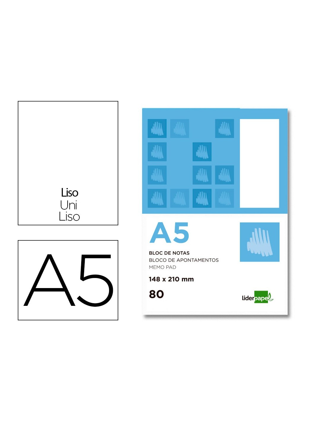 Tapa de cartoncillo impreso de 250 g/m². 80 hojas. Papel de 60 g/m². Perforado.