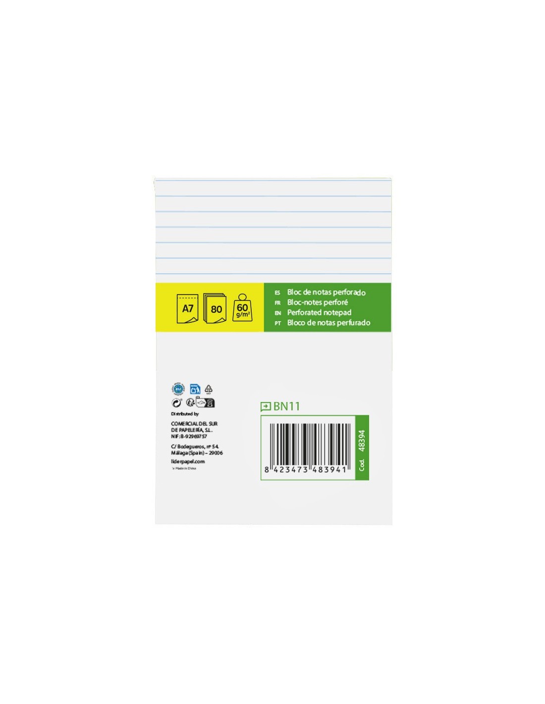 BLOC NOTAS LIDERPAPEL A7 HORIZONTAL 80H. 60GR. PERFORADO