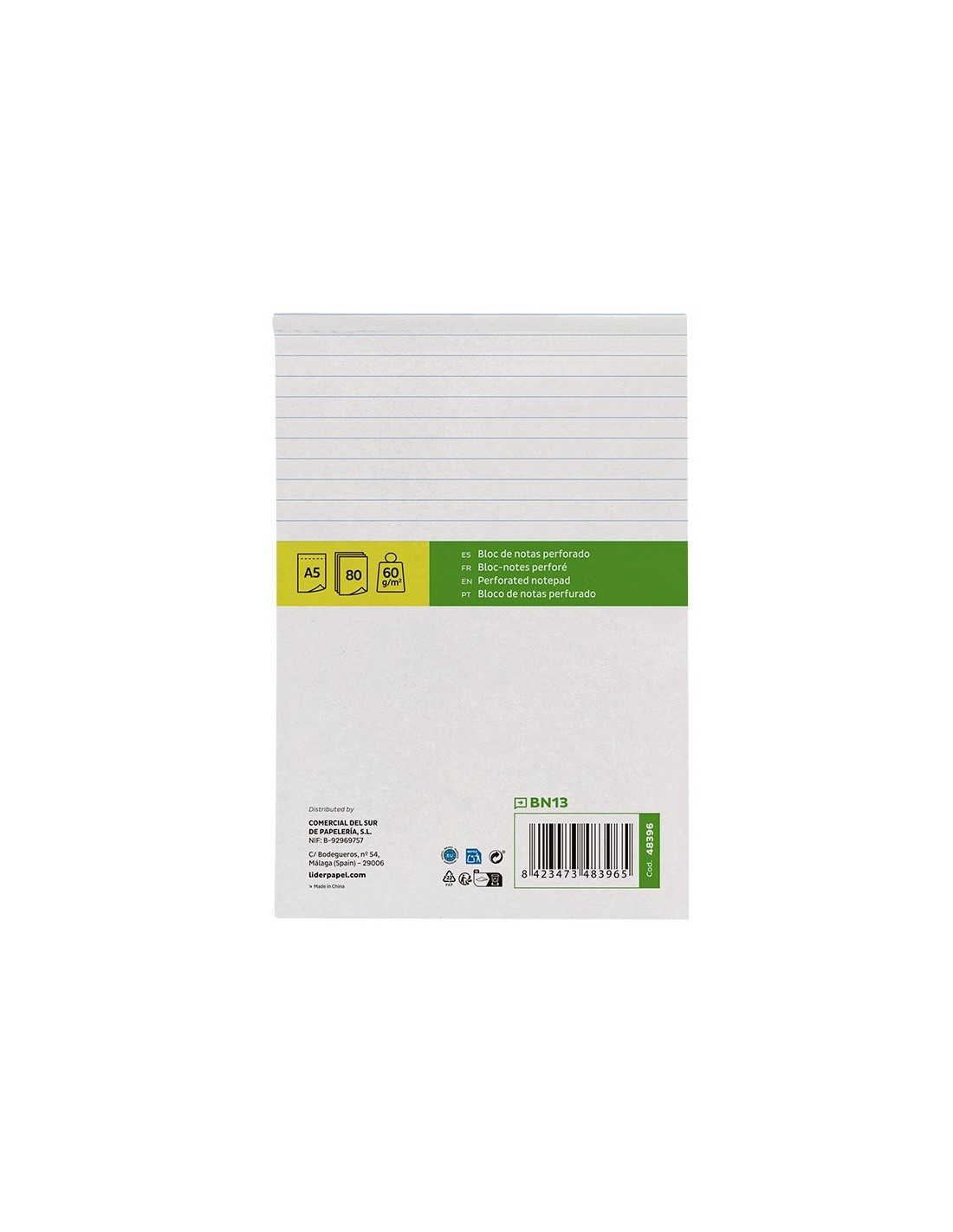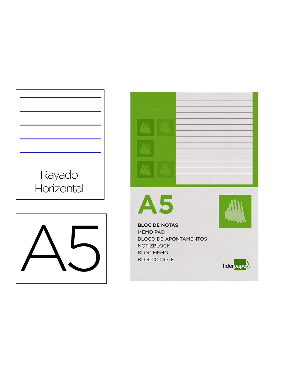 BLOC NOTAS LIDERPAPEL A5 HORIZONTAL 80H. 60GR. PERFORADO