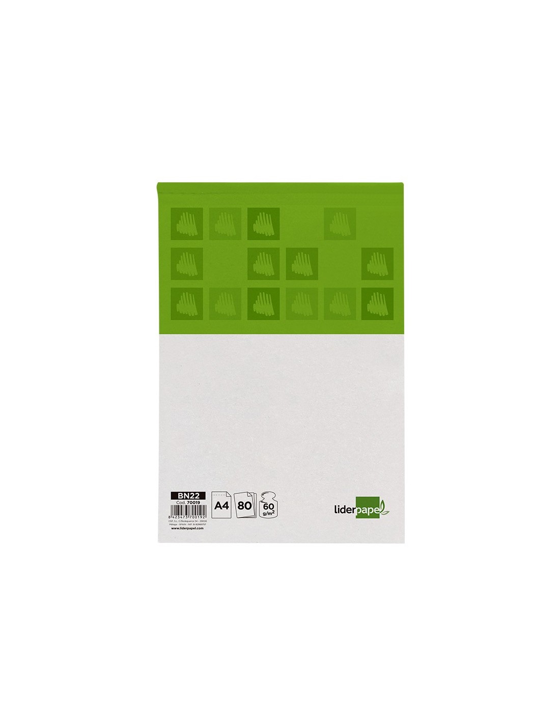 Perforado. Sin tapa. Con lomo encolado. 80 hojas. Papel de 60 g/m². Formato apaisado.