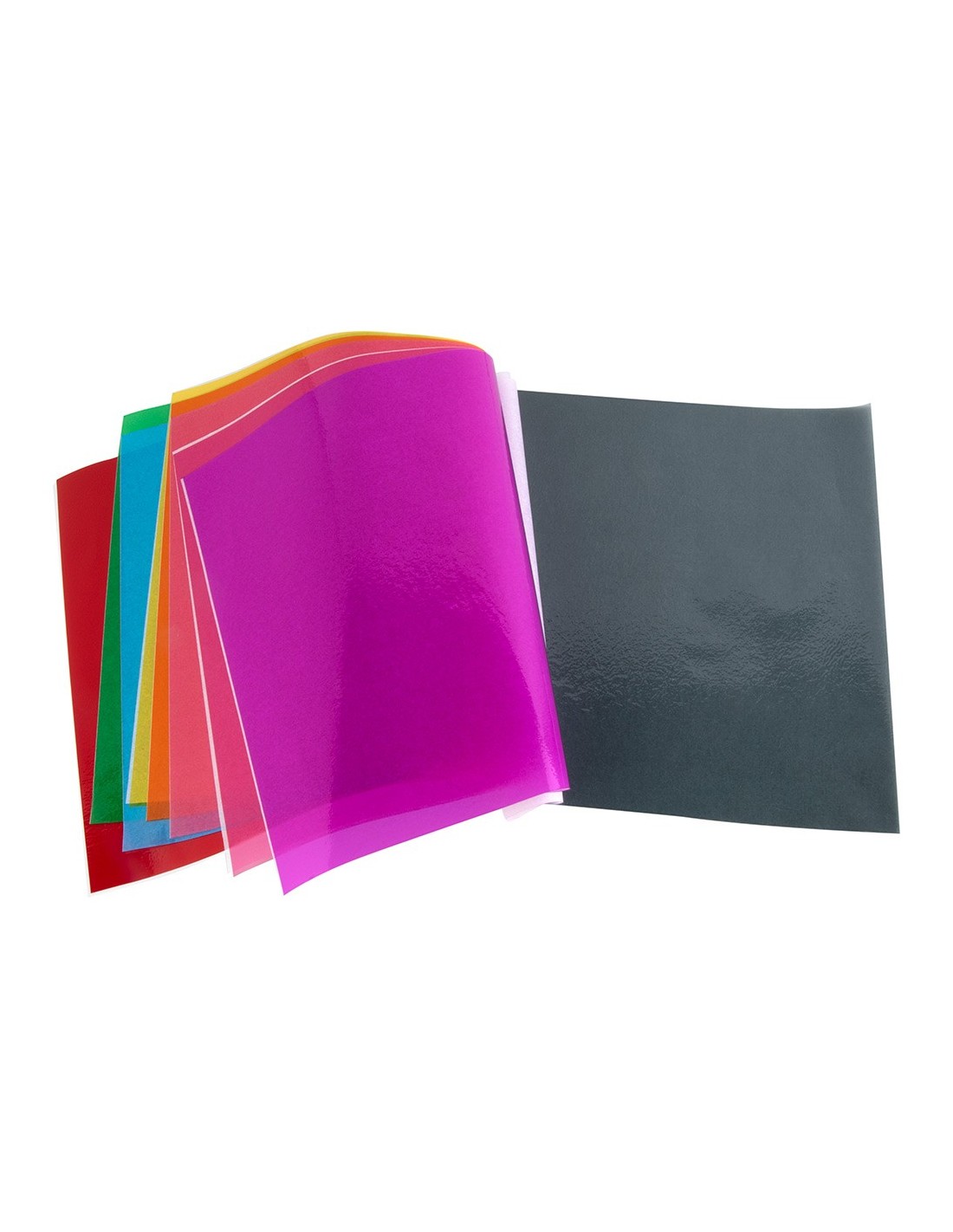 10 hojas de papel celofán en colores surtidos. Gramaje 30 g/m². Medidas: 315 x 240 mm.