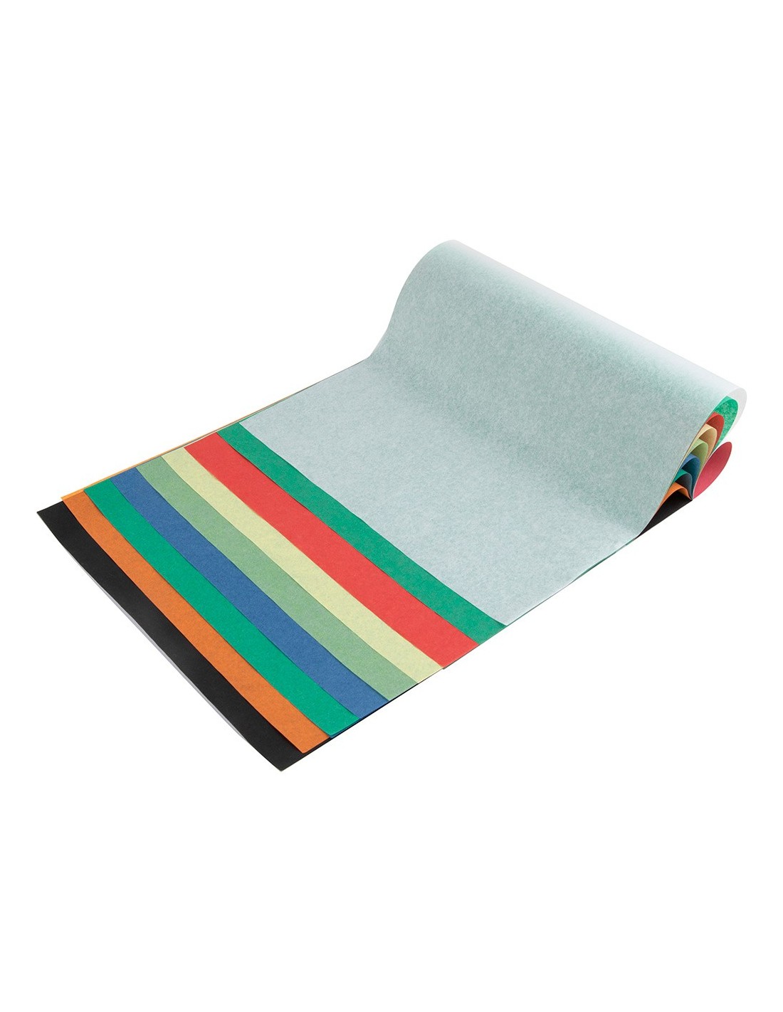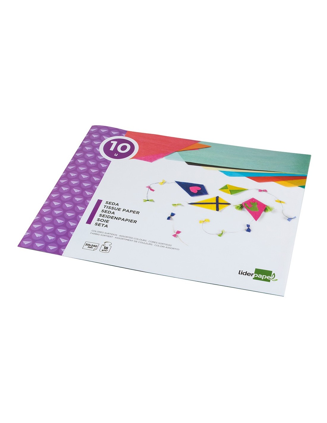 10 hojas de papel seda en colores surtidos. Gramaje 18 g/m². Medidas: 315 x 240 mm.