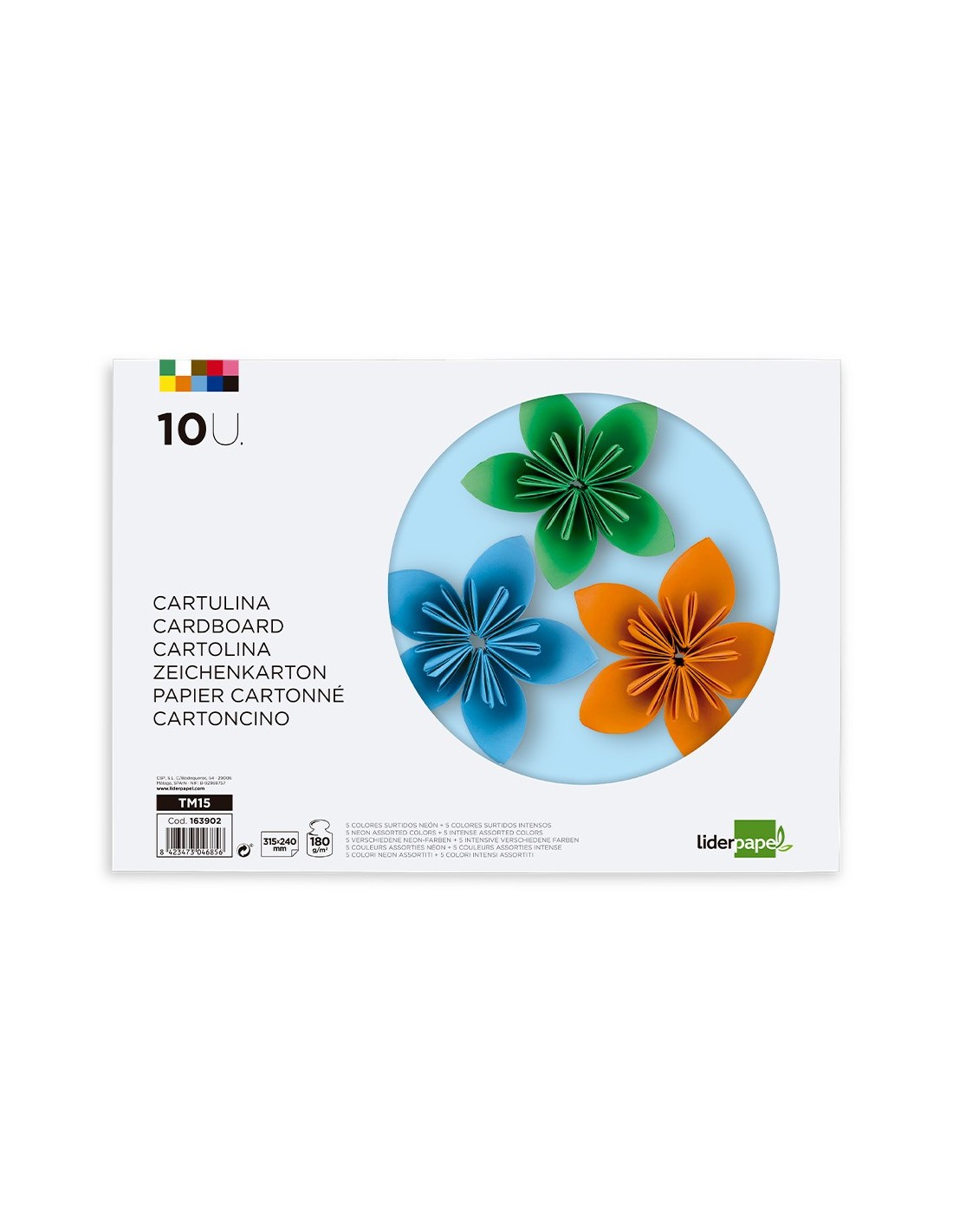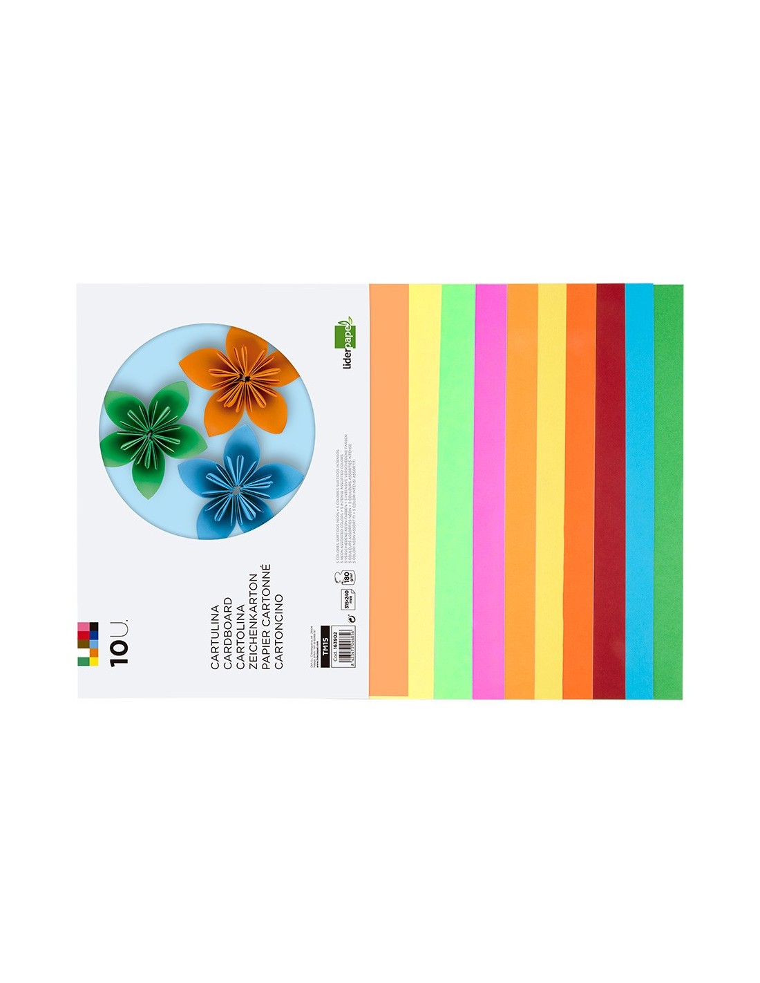 Bloc trabajos manuales de cartulina con 10 hojas en colores surtidos 5 ne ón y 5 colores intensos. Gramaje 180 g/m². Ideal para MANUALIDADES. MEDIDAS: 240 X 315 MM.