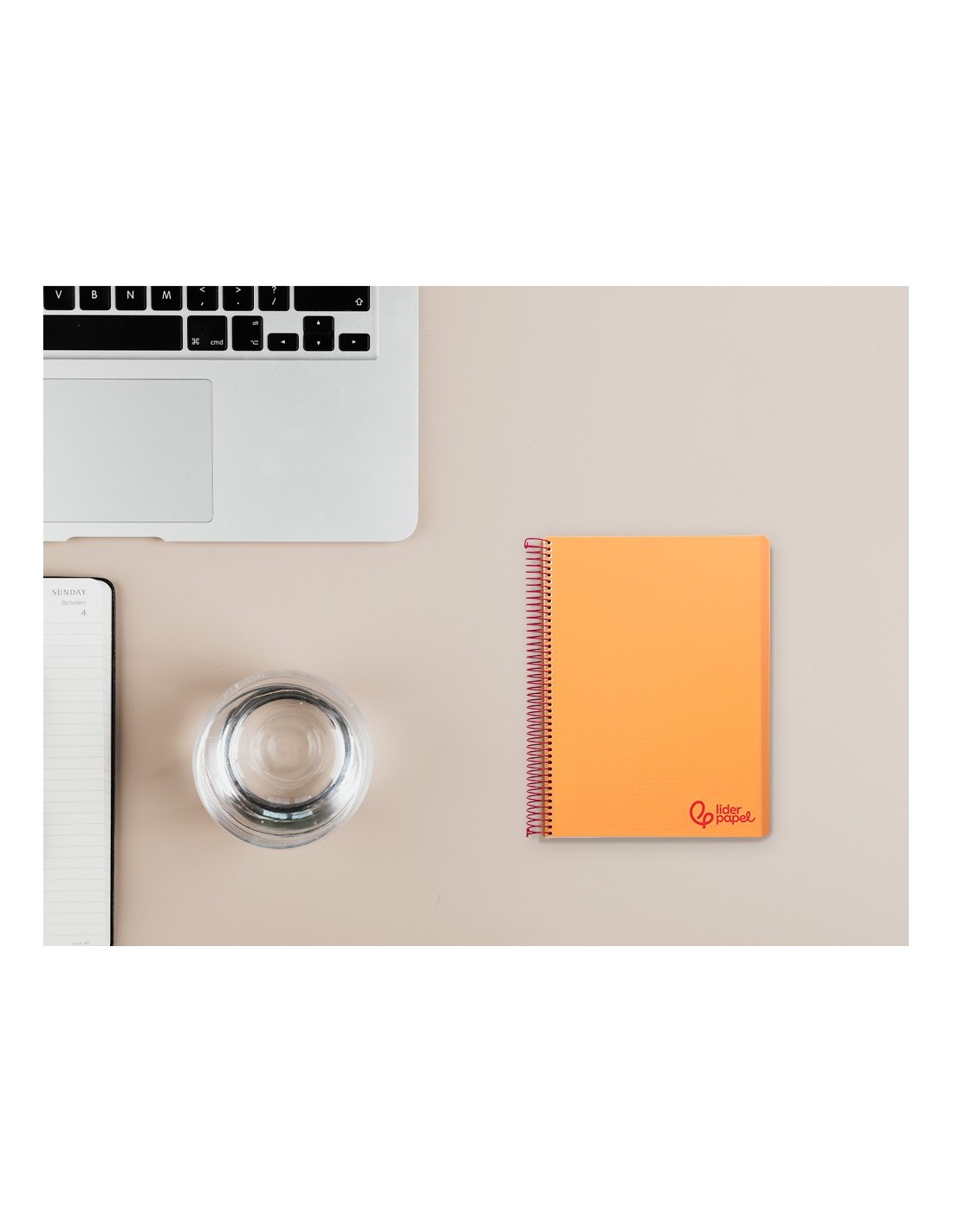 Tapa de polipropileno opaco de 600 micras impreso, que proporciona mayor duración y flexibilidad al cuaderno. Papel de 90 g/m².