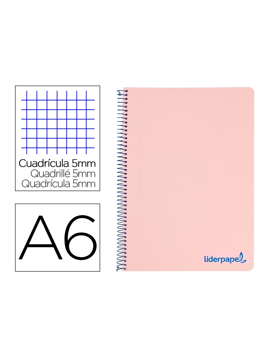 Tapa de polipropileno opaco de 600 micras impreso, que proporciona mayor duración y flexibilidad al cuaderno. Papel de 90 g/m².