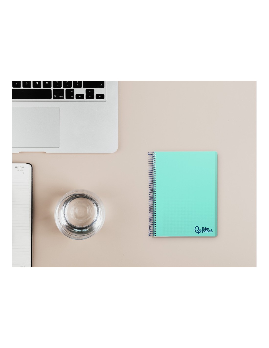 Tapa de polipropileno opaco de 600 micras impreso, que proporciona mayor duración y flexibilidad al cuaderno. Papel de 90 g/m².