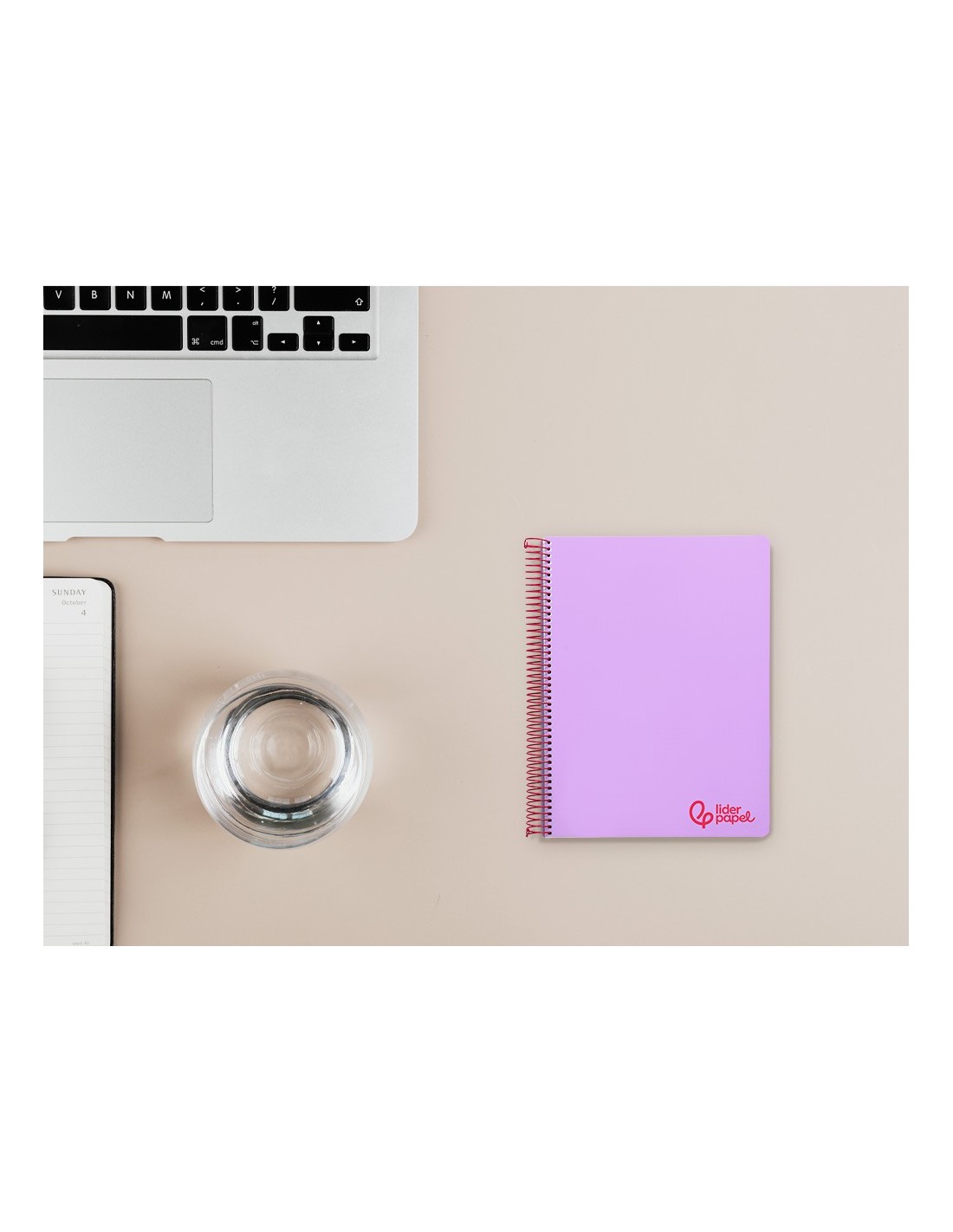Tapa de polipropileno opaco de 600 micras impreso, que proporciona mayor duración y flexibilidad al cuaderno. Papel de 90 g/m².