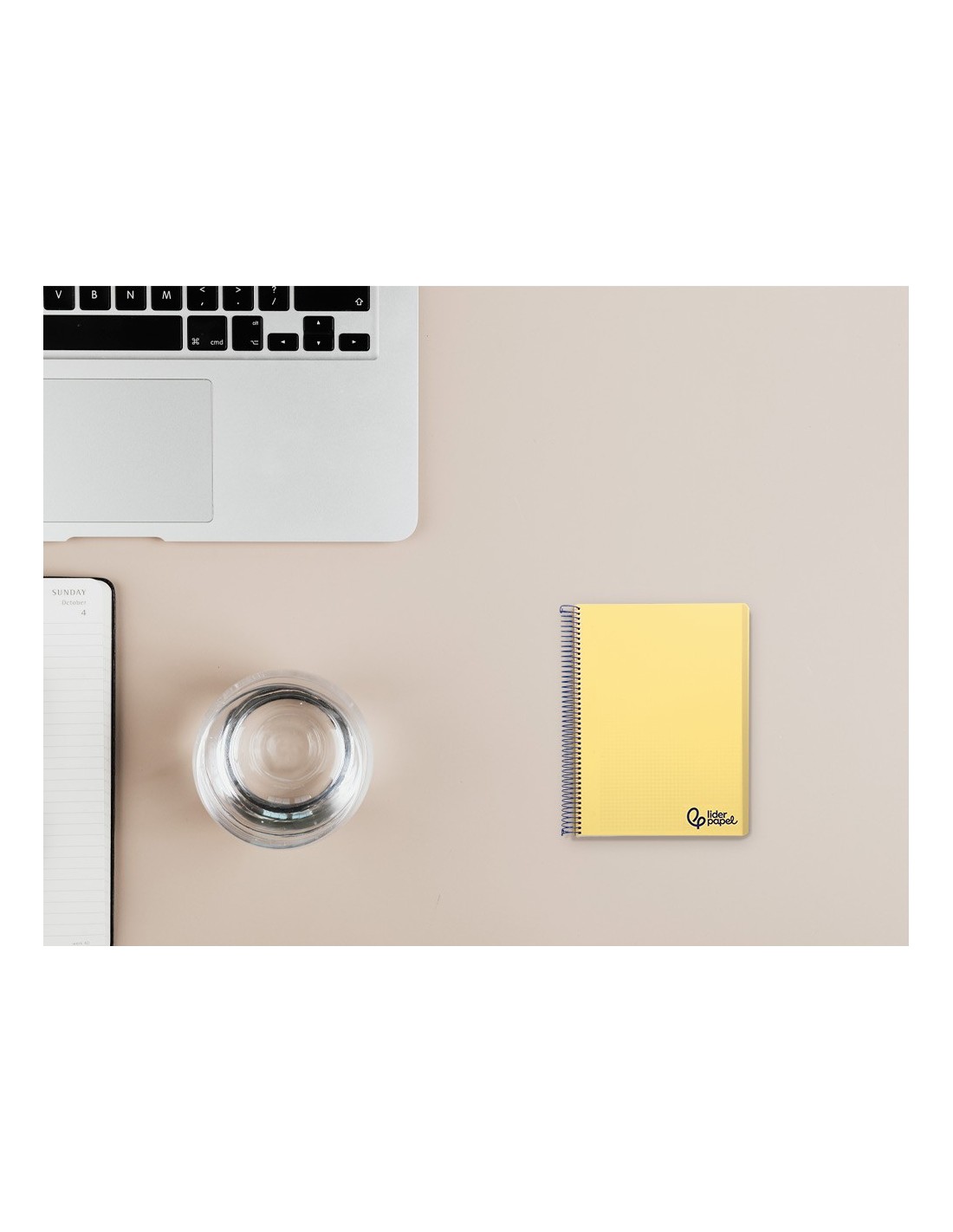Tapa de polipropileno opaco de 600 micras impreso, que proporciona mayor duración y flexibilidad al cuaderno. Papel de 90 g/m².