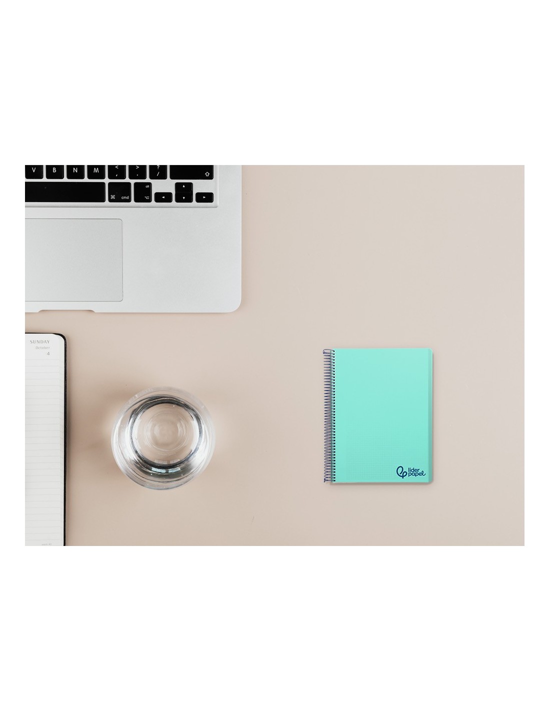 Tapa de polipropileno opaco de 600 micras impreso, que proporciona mayor duración y flexibilidad al cuaderno. Papel de 90 g/m².