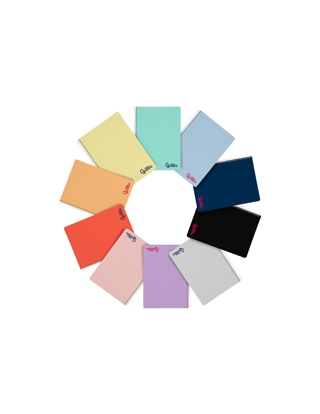 Tapa de polipropileno opaco de 600 micras impreso, que proporciona mayor duración y flexibilidad al cuaderno. Papel de 90 g/m².