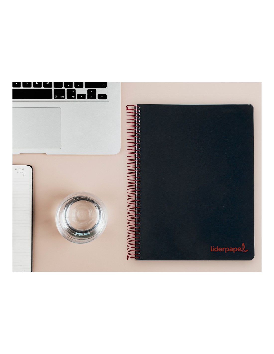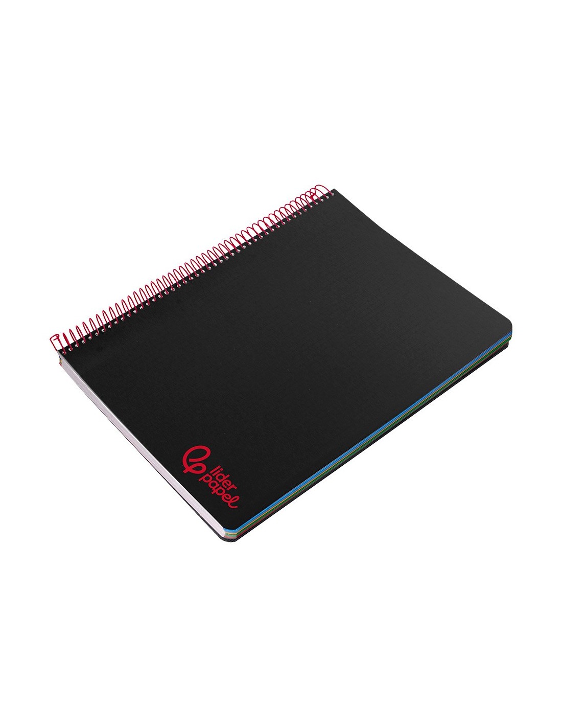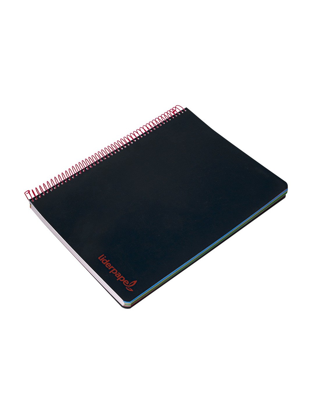 Tapa de polipropileno opaco de 600 micras impreso, que proporciona mayor duración y flexibilidad al cuaderno. Papel de 90 g/m².