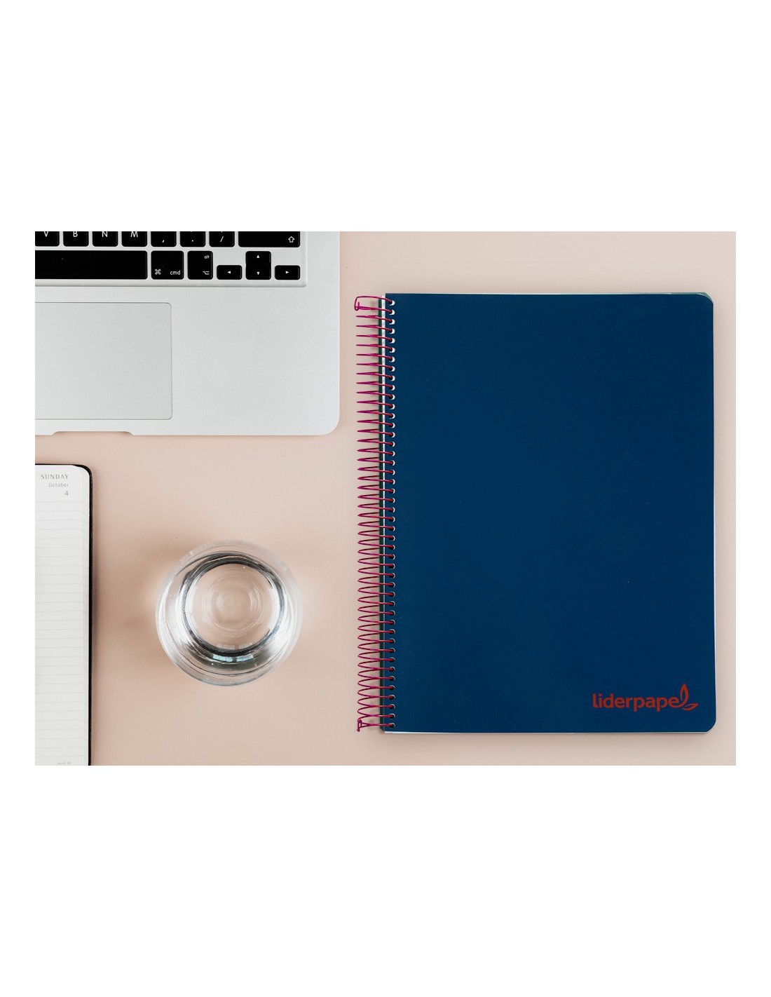 Tapa de polipropileno opaco de 600 micras impreso, que proporciona mayor duración y flexibilidad al cuaderno. Papel de 90 g/m².