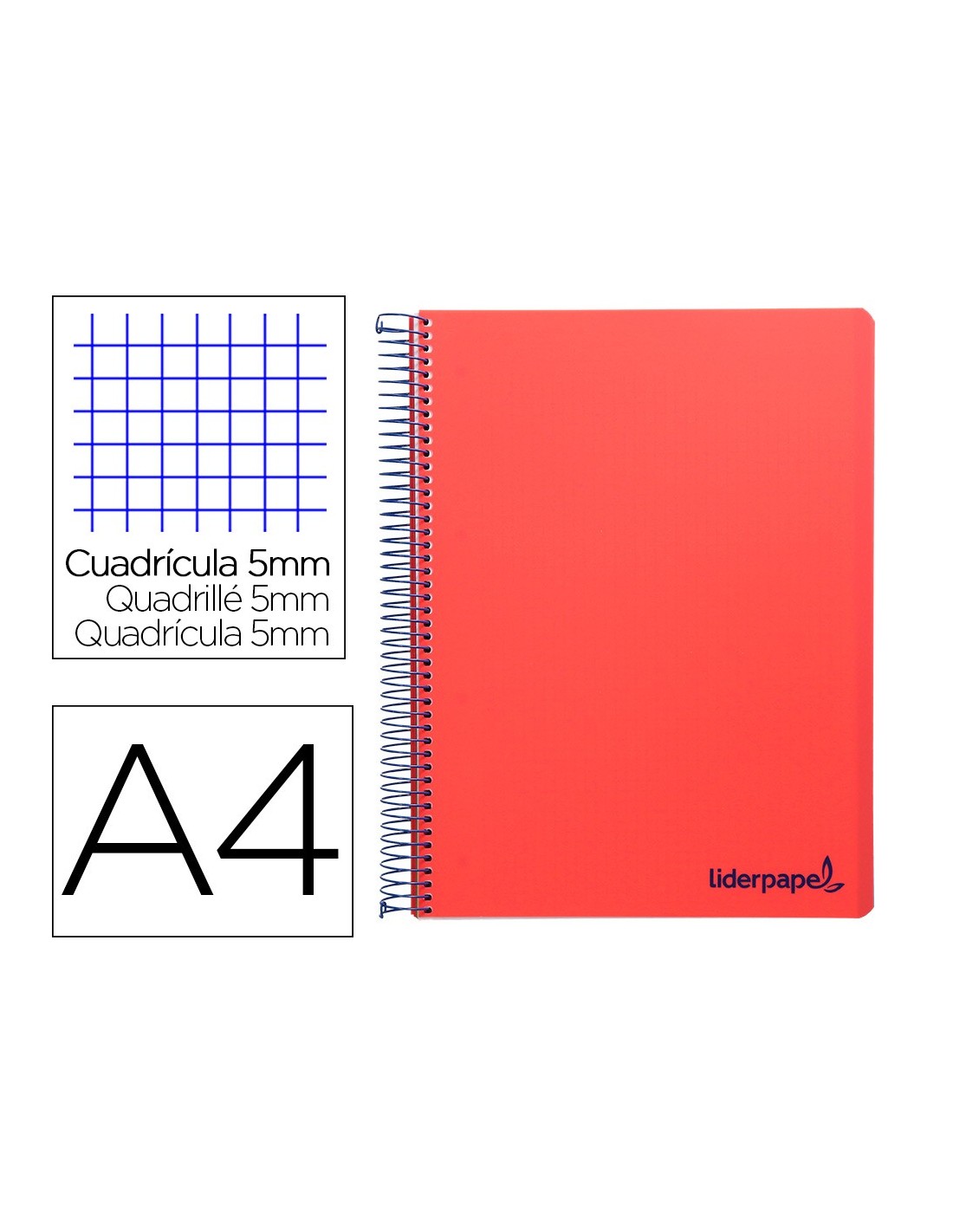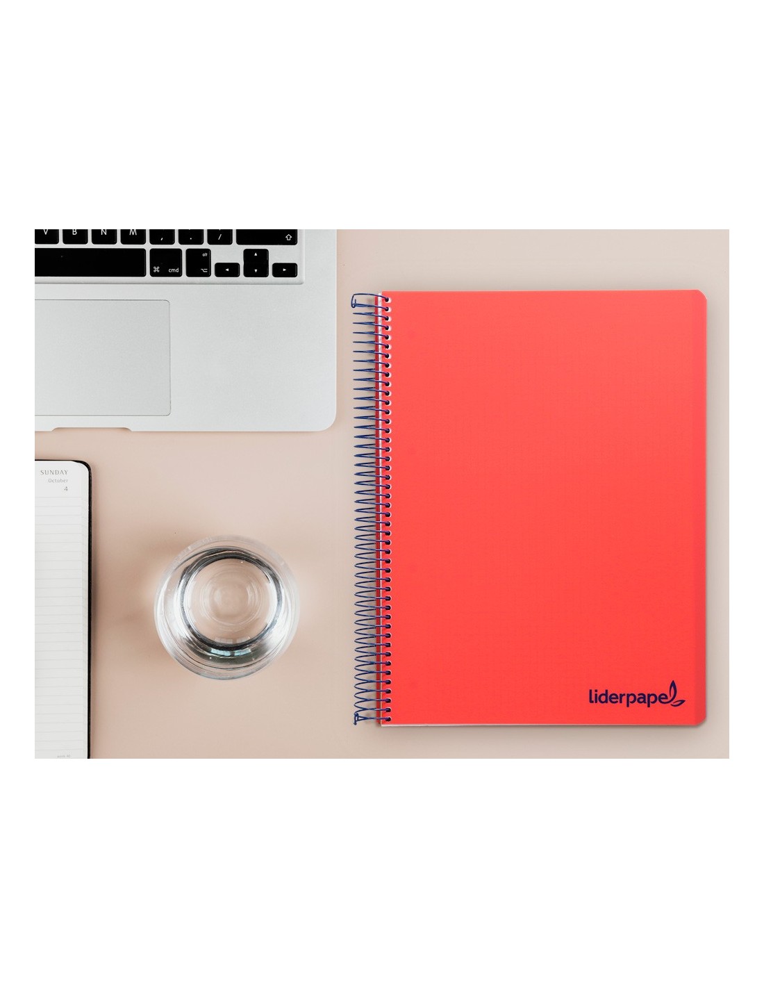 Tapa de polipropileno opaco de 600 micras impreso, que proporciona mayor duración y flexibilidad al cuaderno. Papel de 90 g/m².