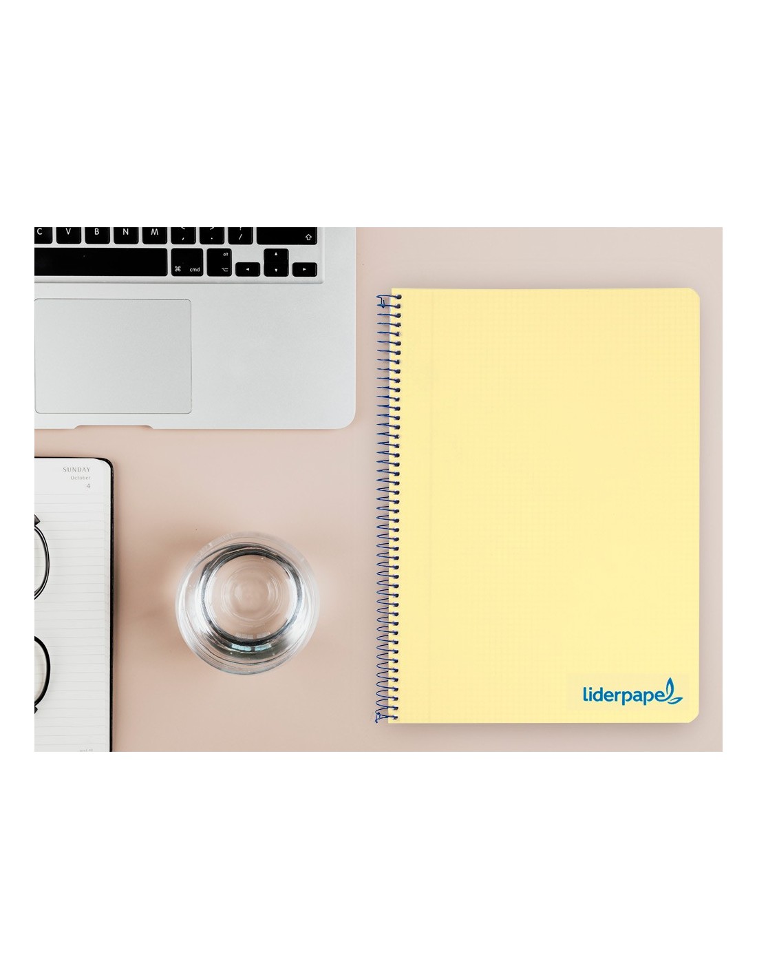 Tapa de polipropileno opaco de 600 micras impreso, que proporciona mayor duración y flexibilidad al cuaderno. Papel de 90 g/m².