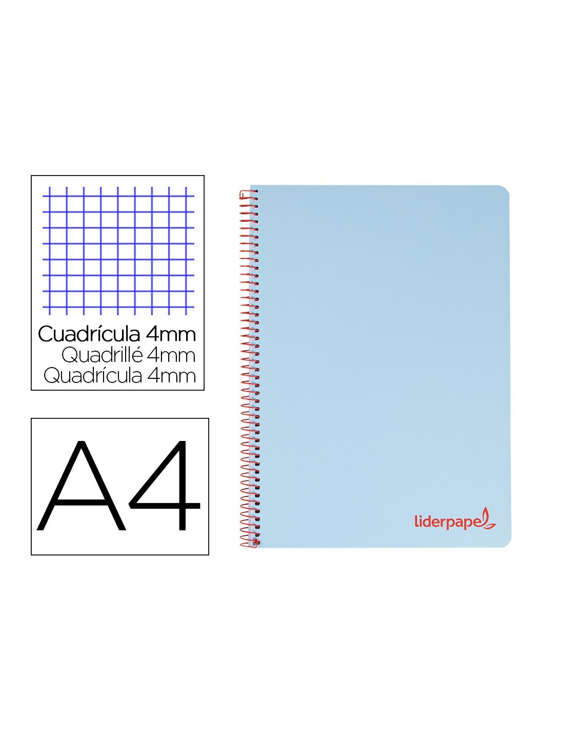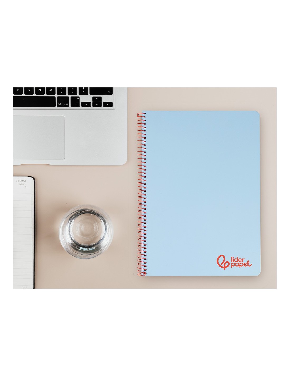 Tapa de polipropileno opaco de 600 micras impreso, que proporciona mayor duración y flexibilidad al cuaderno. Papel de 90 g/m².