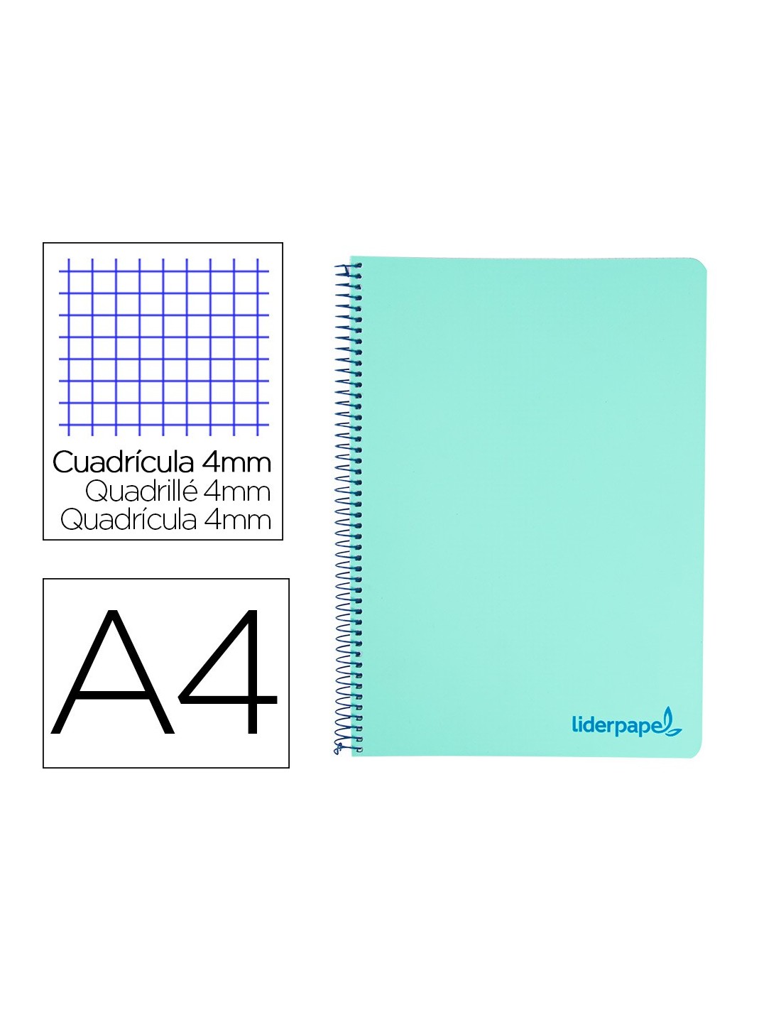 Tapa de polipropileno opaco de 600 micras impreso, que proporciona mayor duración y flexibilidad al cuaderno. Papel de 90 g/m².