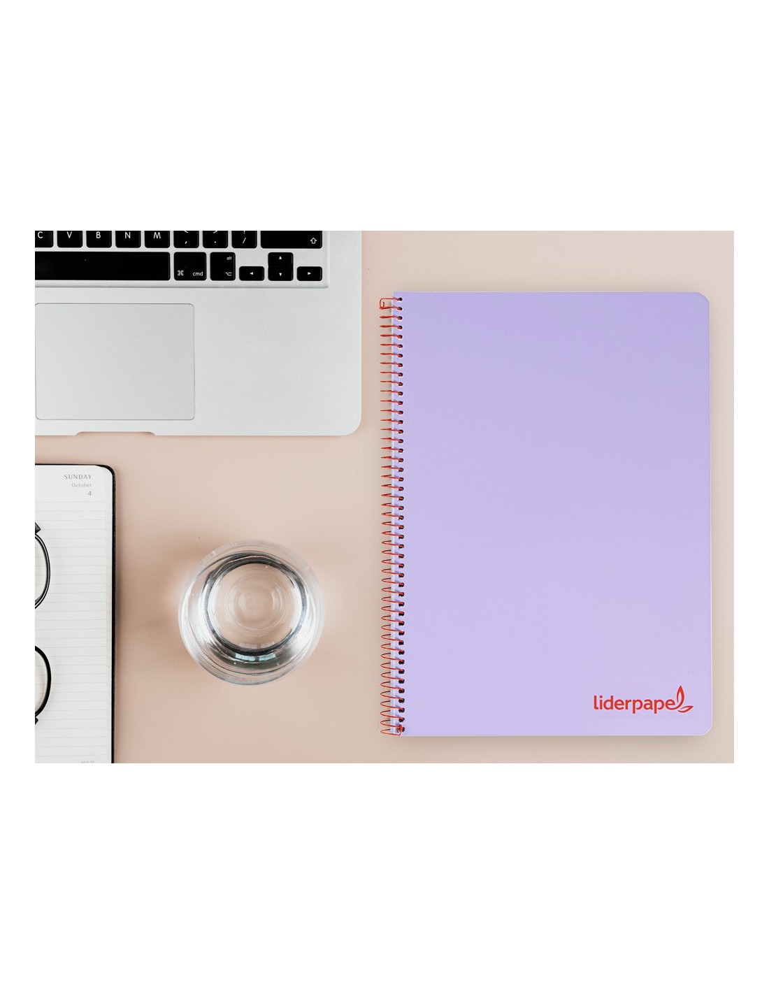 Tapa de polipropileno opaco de 600 micras impreso, que proporciona mayor duración y flexibilidad al cuaderno. Papel de 90 g/m².