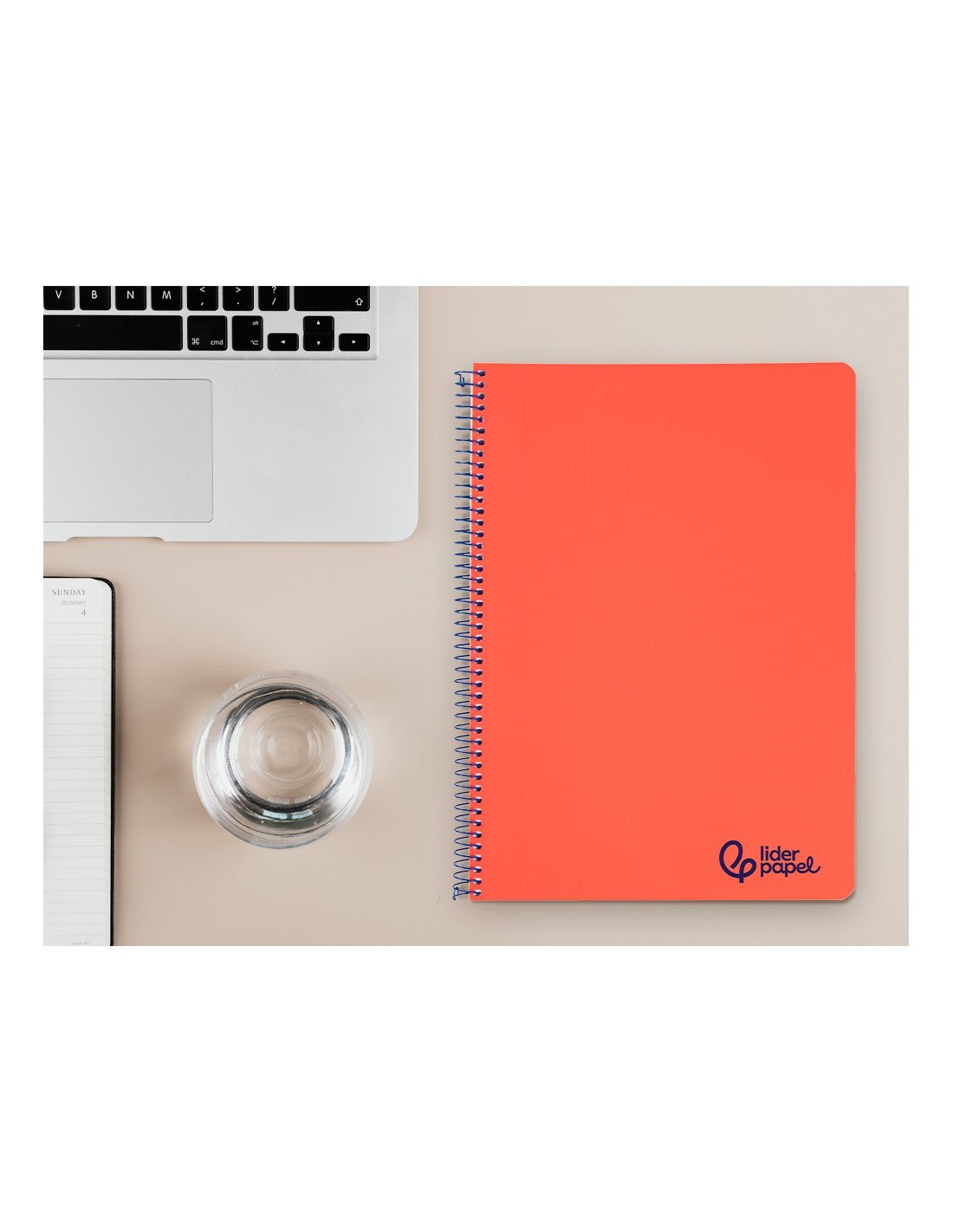 Tapa de polipropileno opaco de 600 micras impreso, que proporciona mayor duración y flexibilidad al cuaderno. Papel de 90 g/m².
