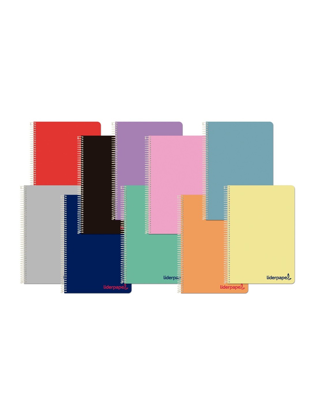 Tapa de polipropileno opaco de 600 micras impreso, que proporciona mayor duración y flexibilidad al cuaderno. Papel de 90 g/m².