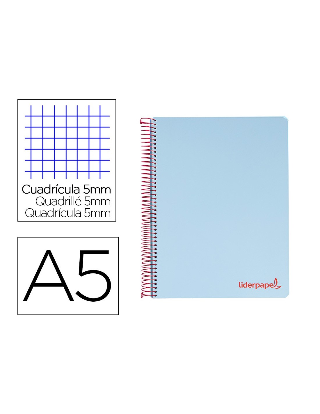 Tapa de polipropileno opaco de 600 micras impreso, que proporciona mayor duración y flexibilidad al cuaderno. Papel de 90 g/m².
