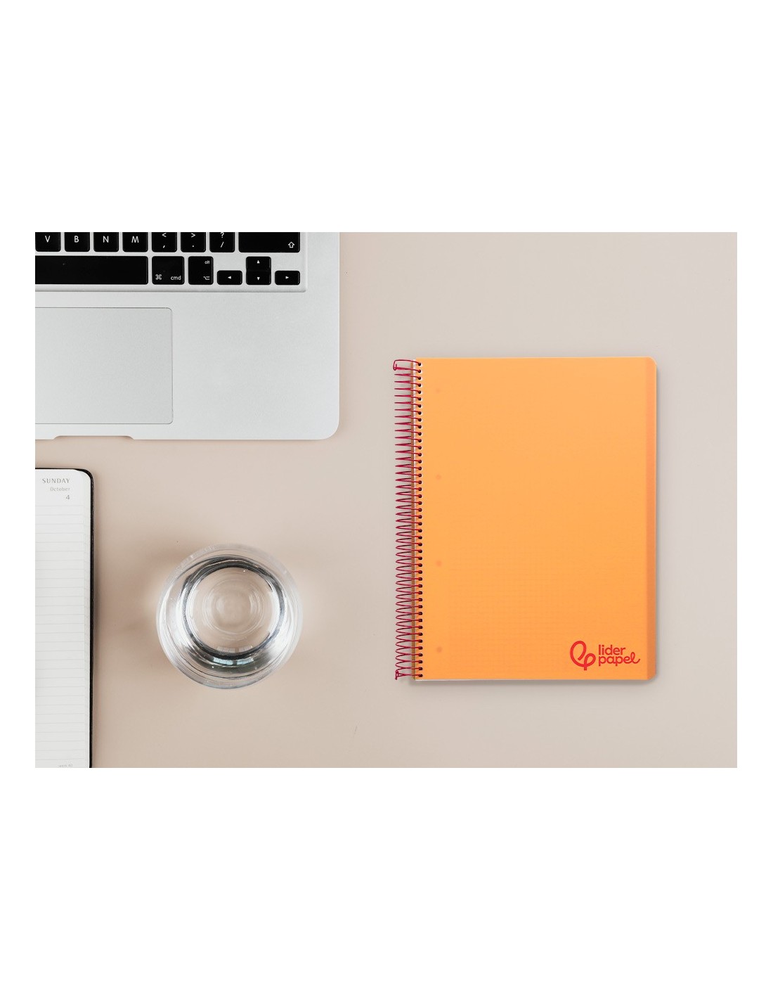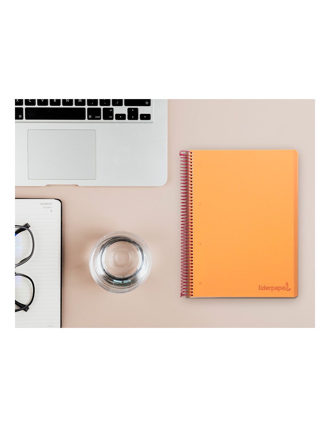 Tapa de polipropileno opaco de 600 micras impreso, que proporciona mayor duración y flexibilidad al cuaderno. Papel de 90 g/m².