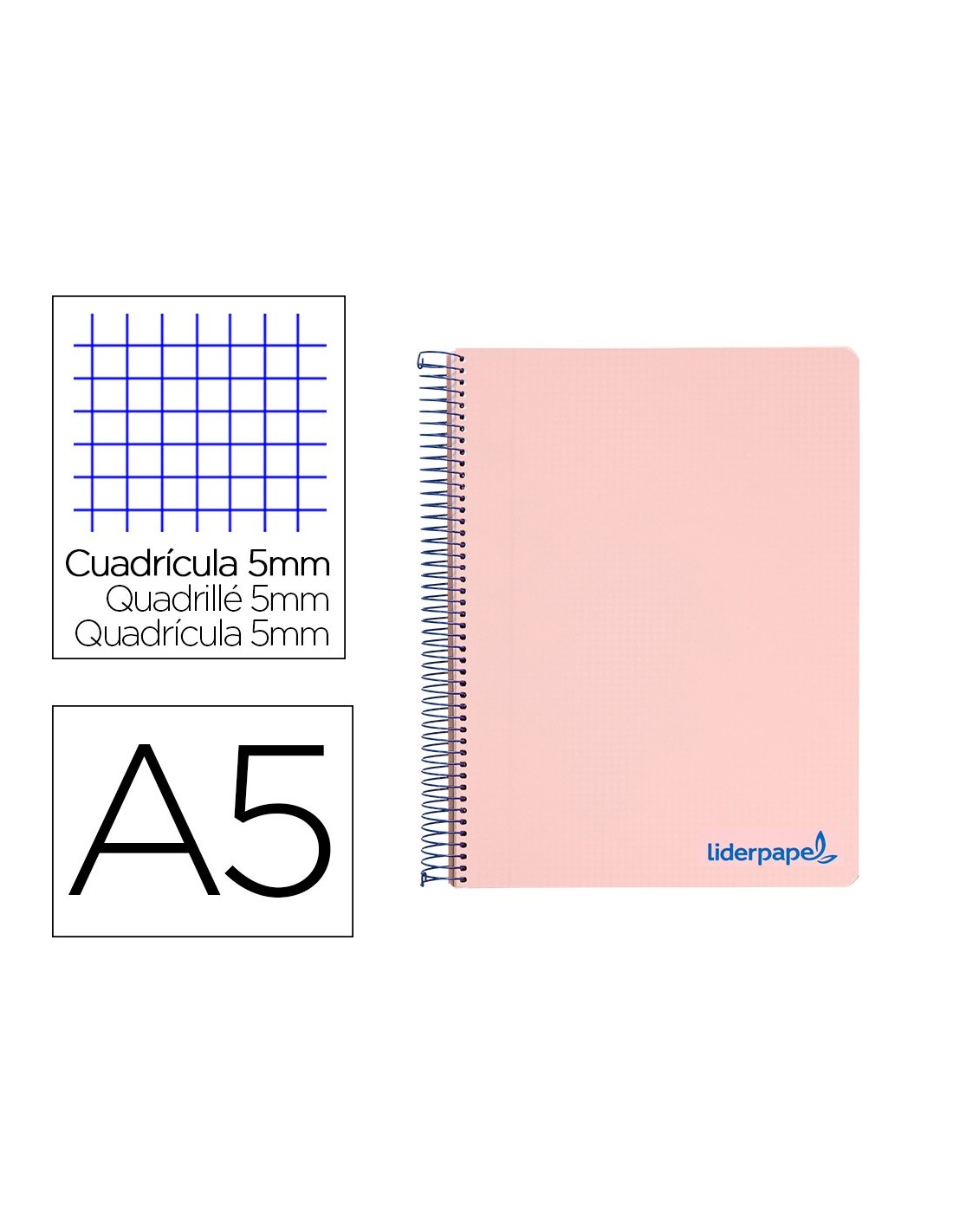 Tapa de polipropileno opaco de 600 micras impreso, que proporciona mayor duración y flexibilidad al cuaderno. Papel de 90 g/m².