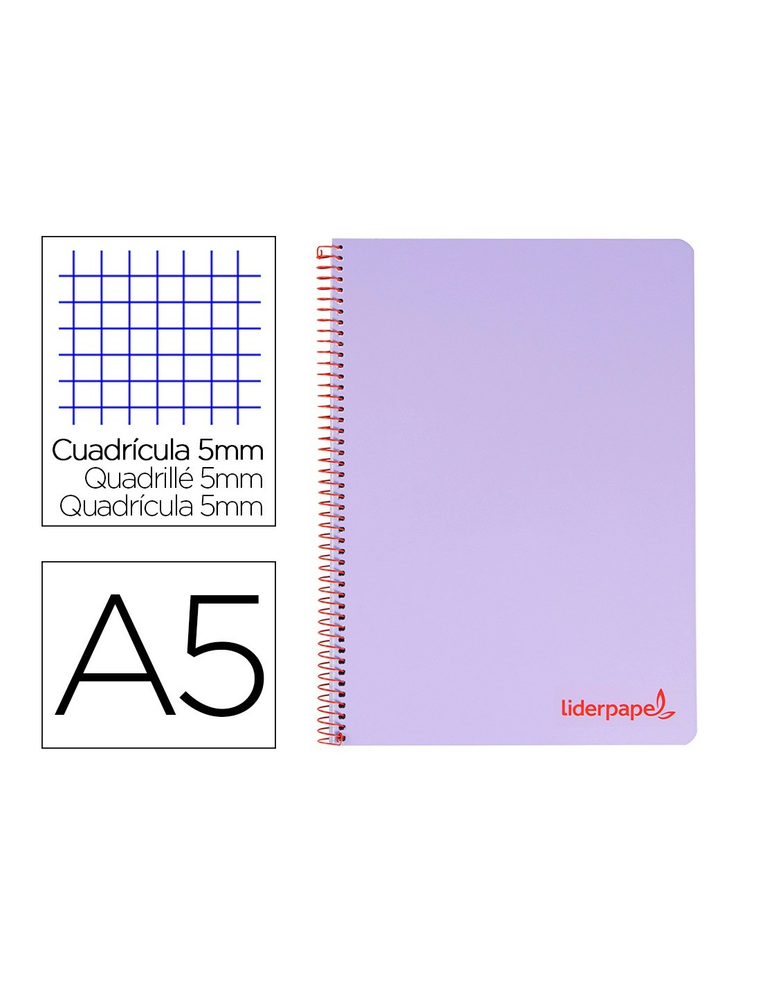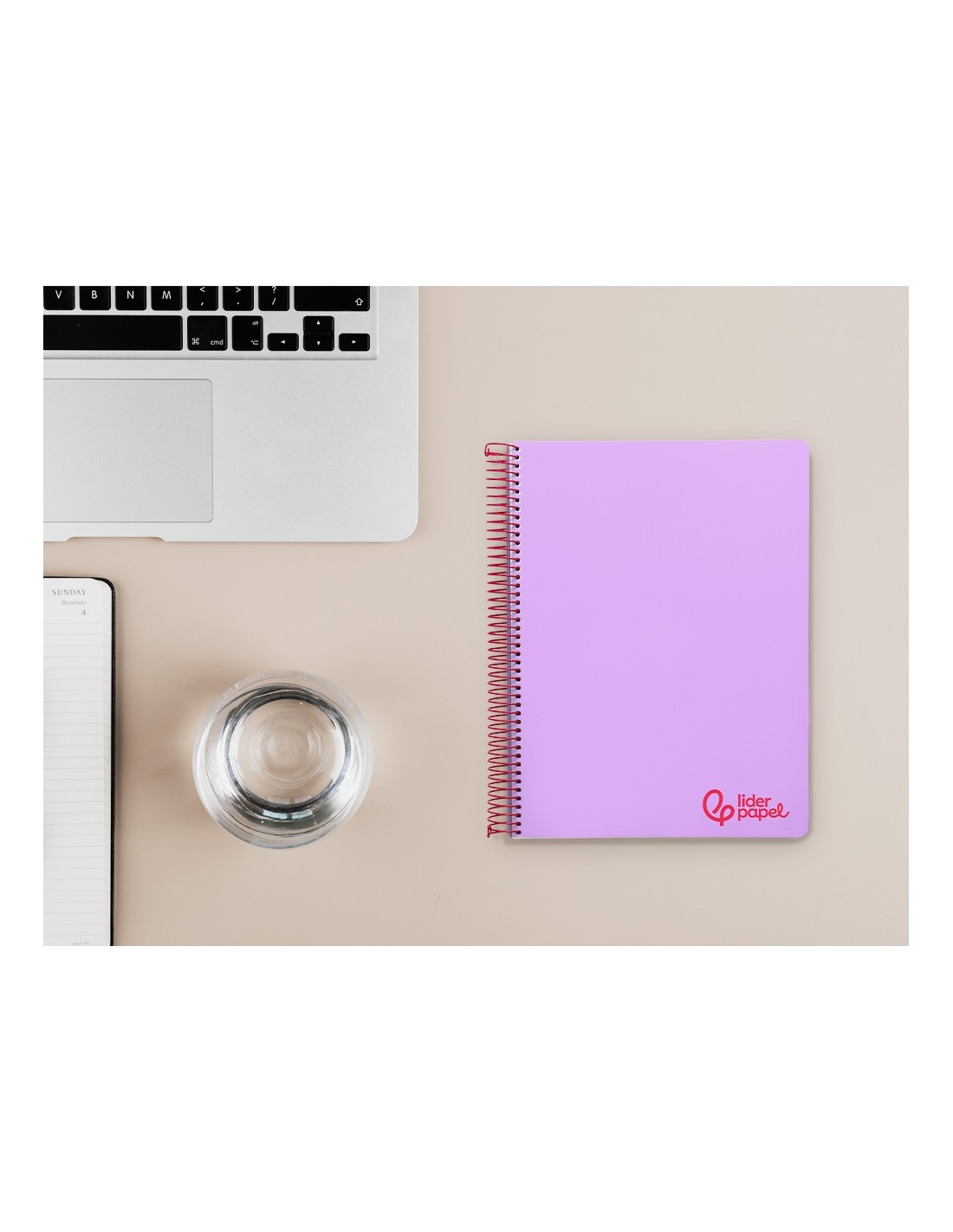 Tapa de polipropileno opaco de 600 micras impreso, que proporciona mayor duración y flexibilidad al cuaderno. Papel de 90 g/m².