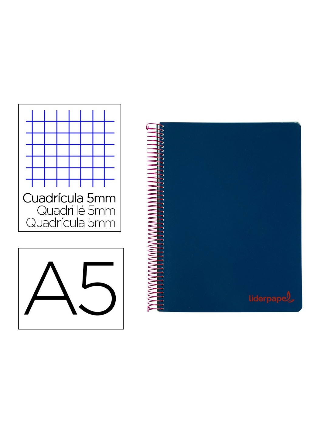 Tapa de polipropileno opaco de 600 micras impreso, que proporciona mayor duración y flexibilidad al cuaderno. Papel de 90 g/m².
