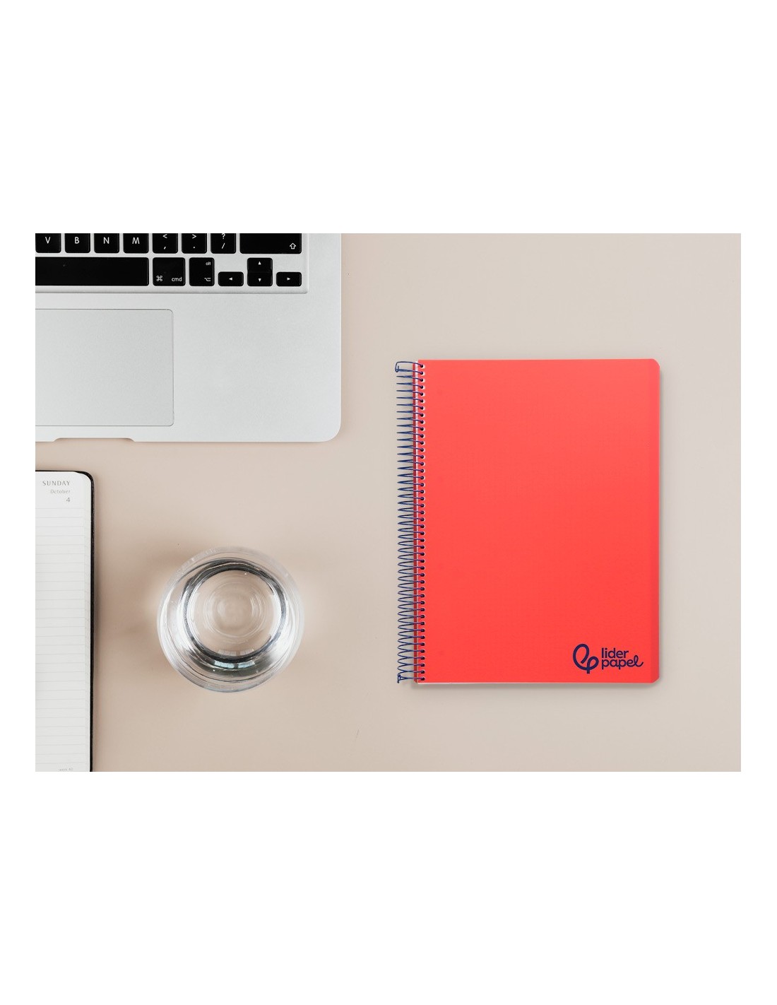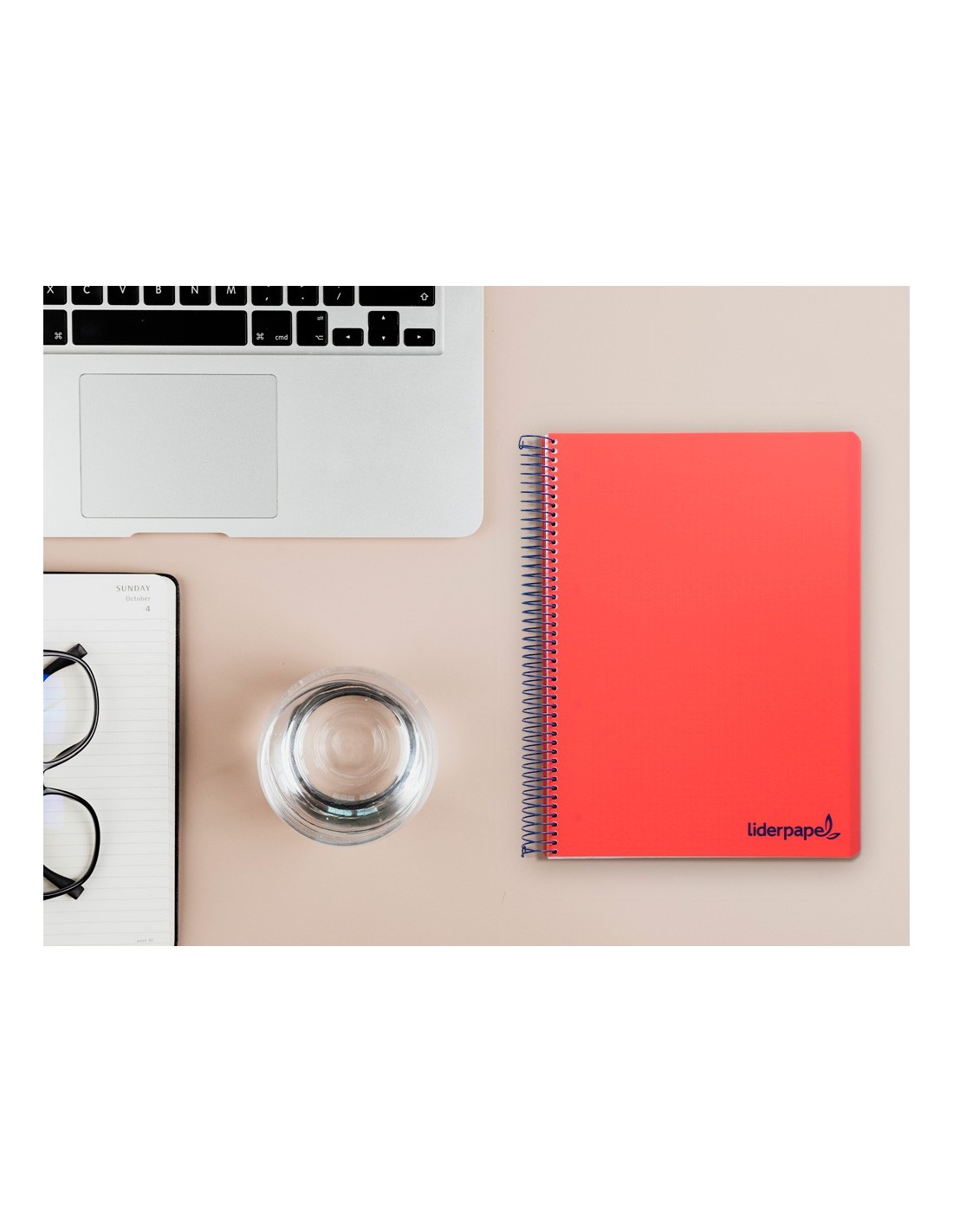 Tapa de polipropileno opaco de 600 micras impreso, que proporciona mayor duración y flexibilidad al cuaderno. Papel de 90 g/m².