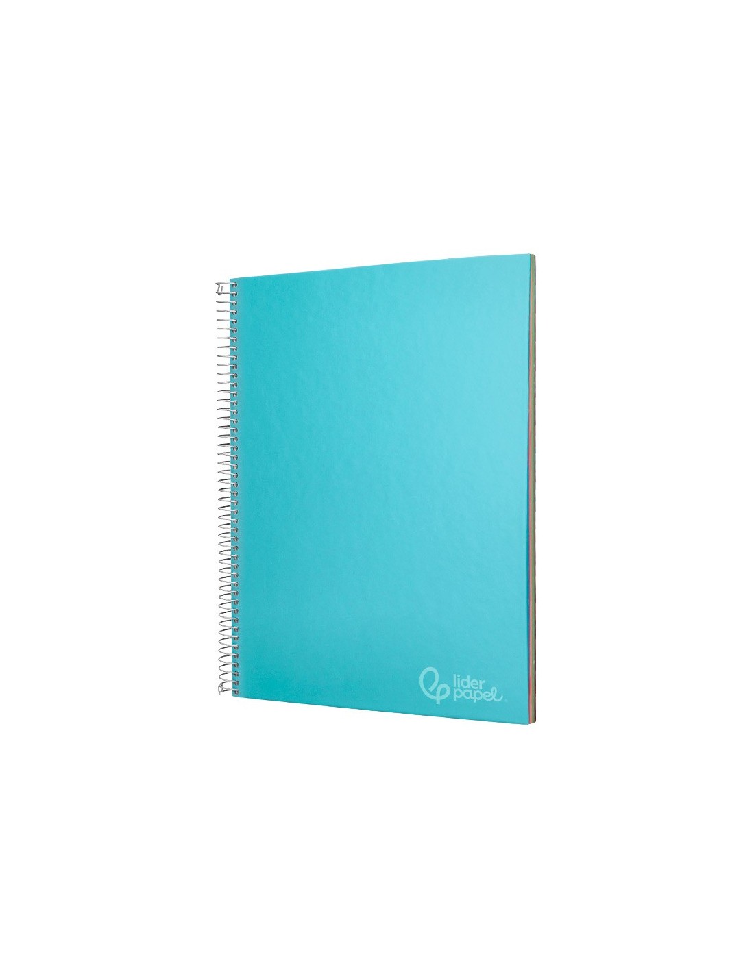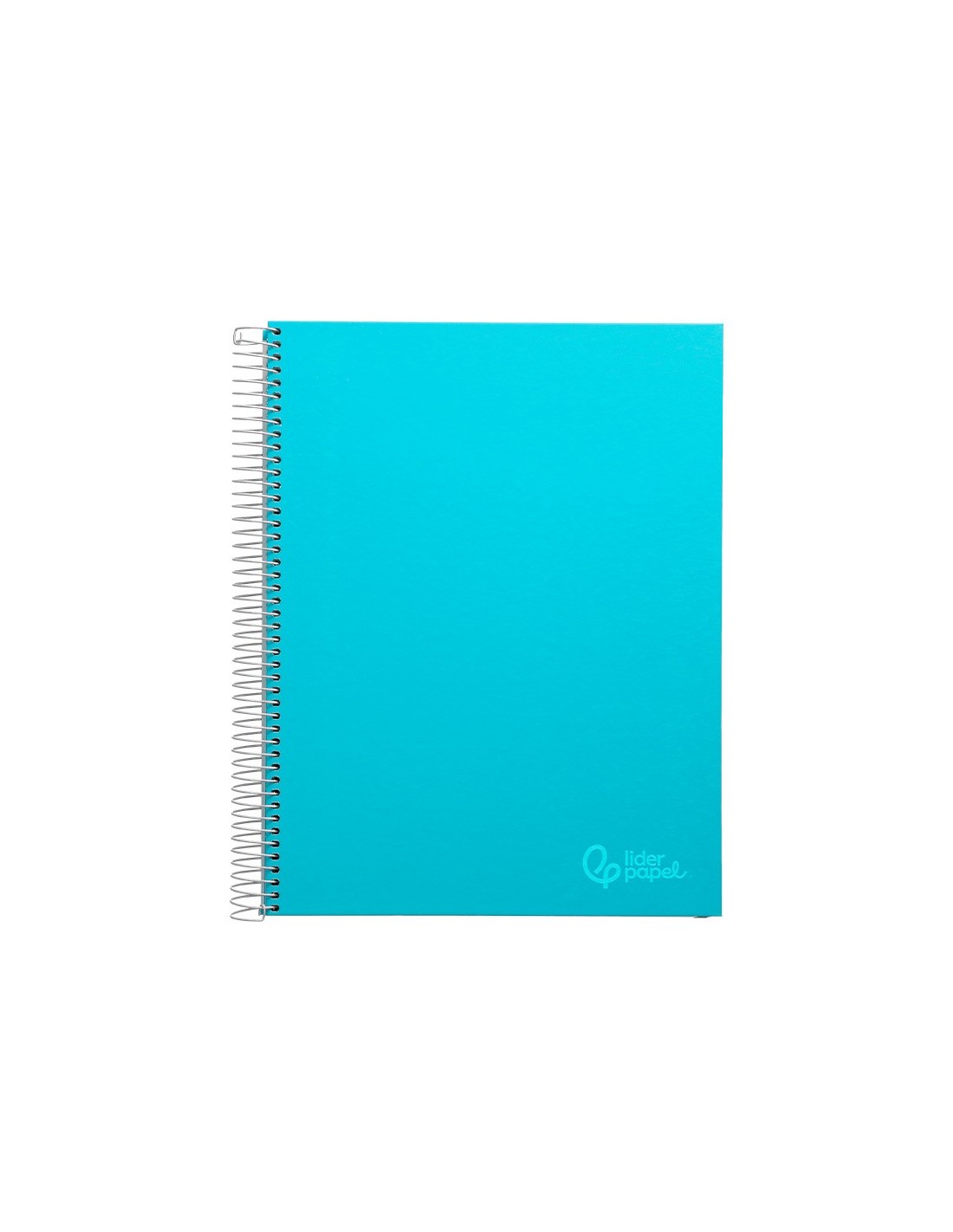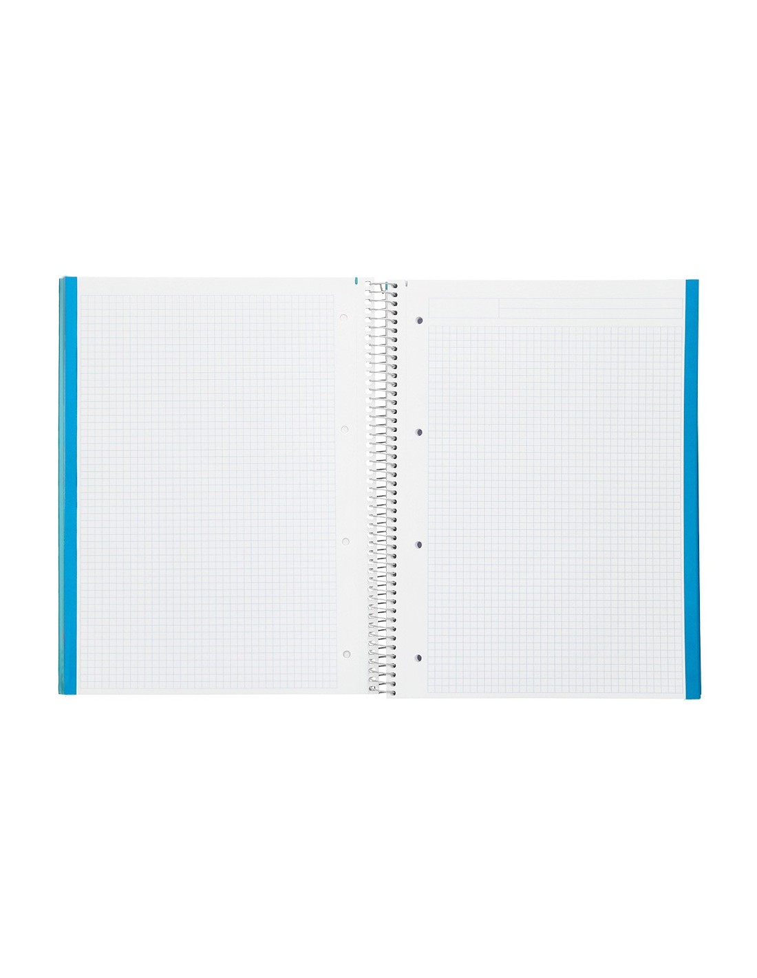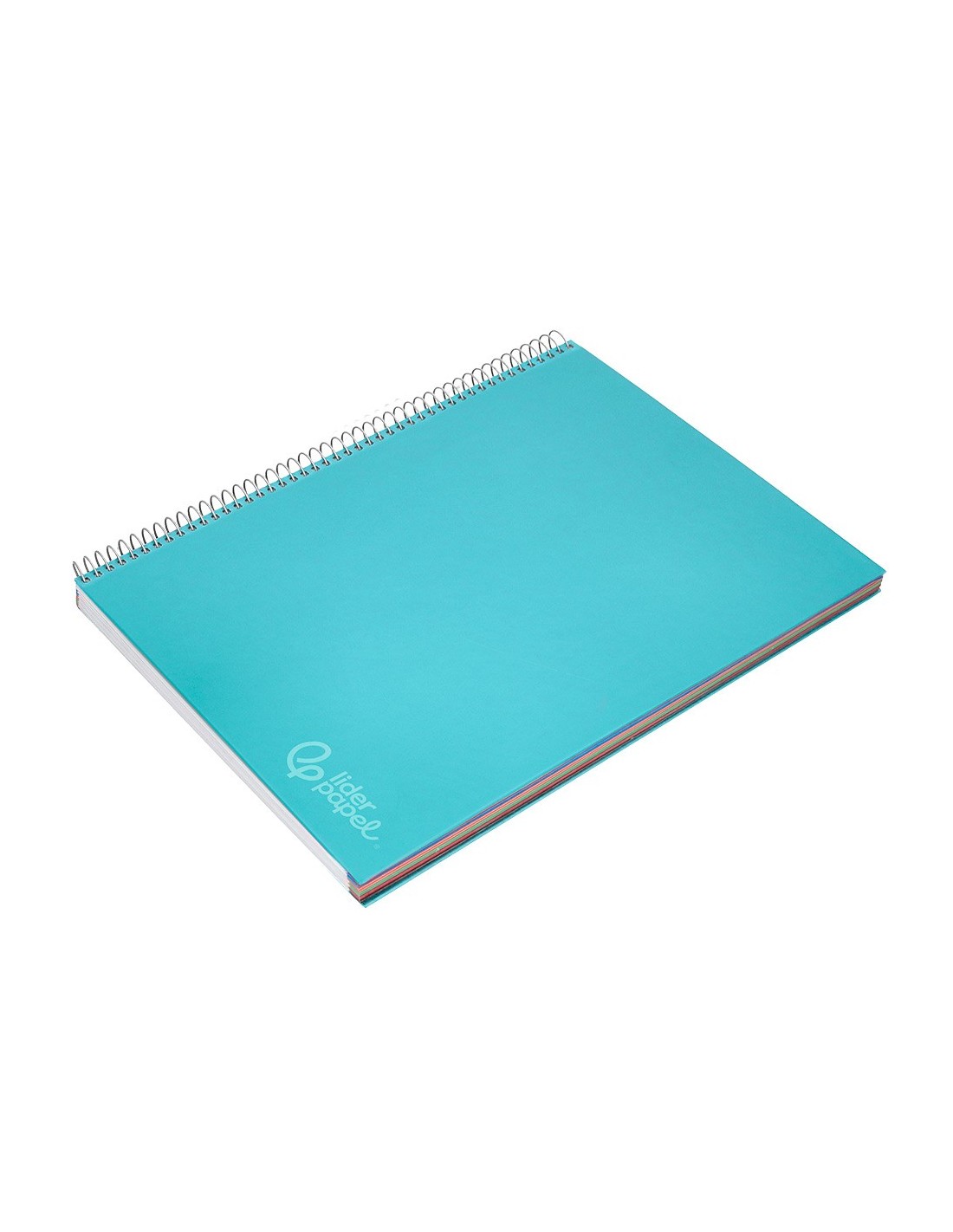 Tapa de cartón entrecolado de 1,5 mm de espesor, forrado con papel estucado mate de 135 g/m². Guarda interior blanca. Papel de 75 g/m ². Microperforado. 140 hojas. Bandas de 5 colores. Con cajetín. Espiral nylonizada. Coil-lock.