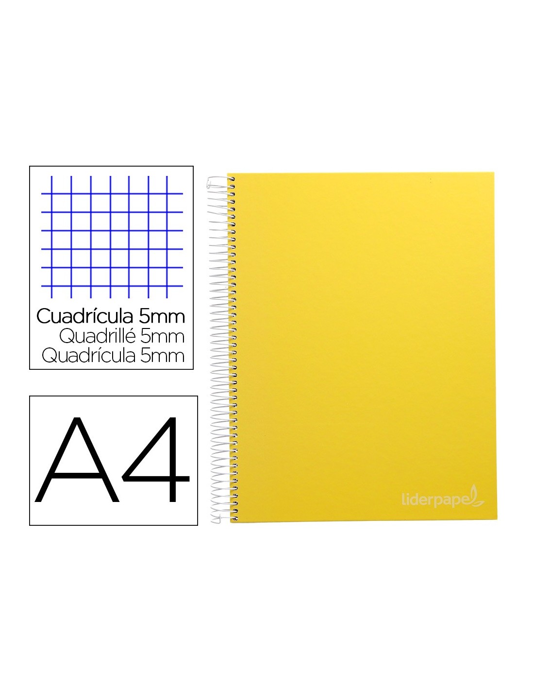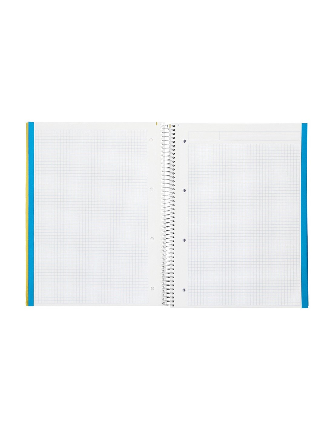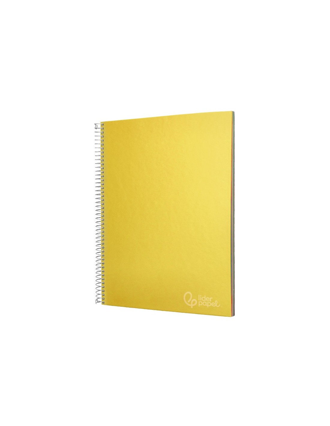 Tapa de cartón entrecolado de 1,5 mm de espesor, forrado con papel estucado mate de 135 g/m². Guarda interior blanca. Papel de 75 g/m ². Microperforado. 140 hojas. Bandas de 5 colores. Con cajetín. Espiral nylonizada. Coil-lock.