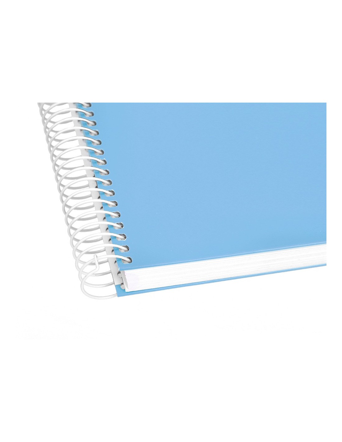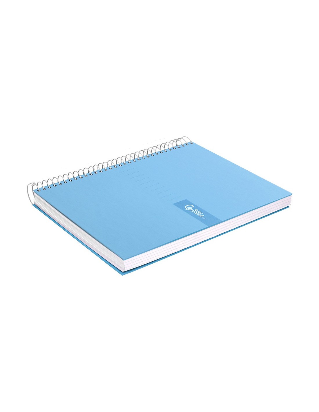 Tapa de cartón entrecolado de 1,5 mm de espesor, forrado con papel estucado mate de 1,35 g/m². Guarda interior impresa y plastificada. Papel de 90 g/m ². Espiral nylonizada. Coil-lock.