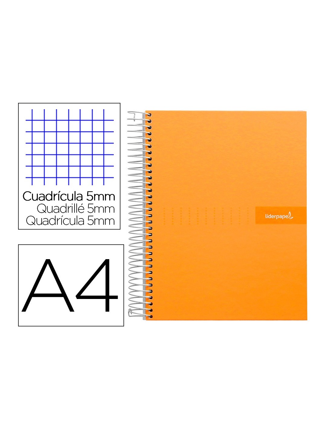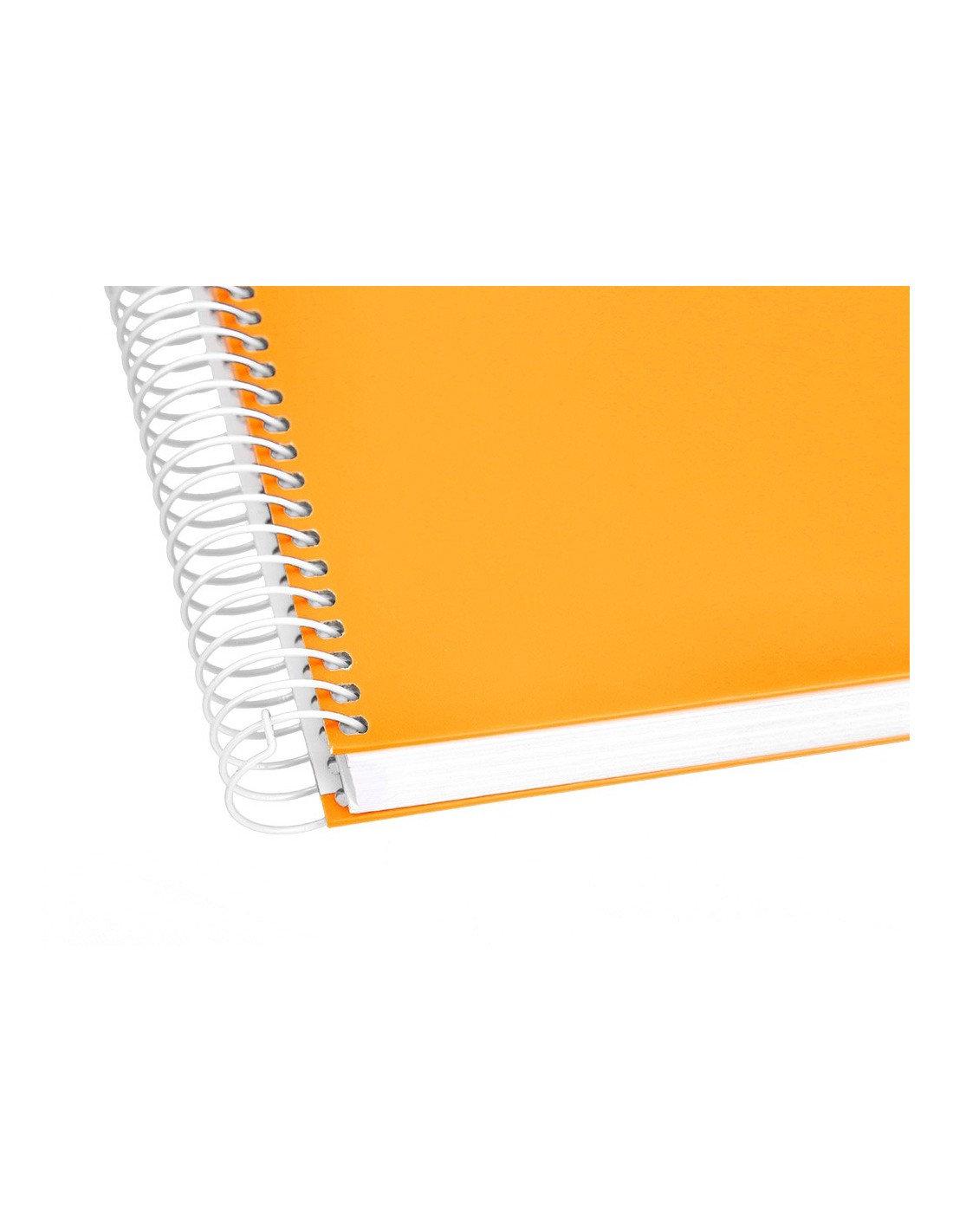 Tapa de cartón entrecolado de 1,5 mm de espesor, forrado con papel estucado mate de 1,35 g/m². Guarda interior impresa y plastificada. Papel de 90 g/m ². Espiral nylonizada. Coil-lock.