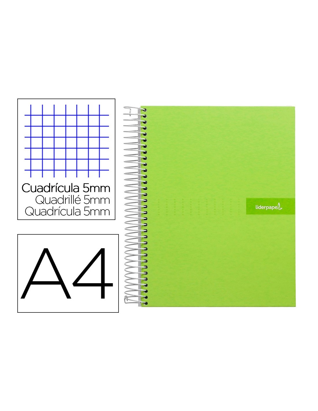 Tapa de cartón entrecolado de 1,5 mm de espesor, forrado con papel estucado mate de 1,35 g/m². Guarda interior impresa y plastificada. Papel de 90 g/m ². Espiral nylonizada. Coil-lock.